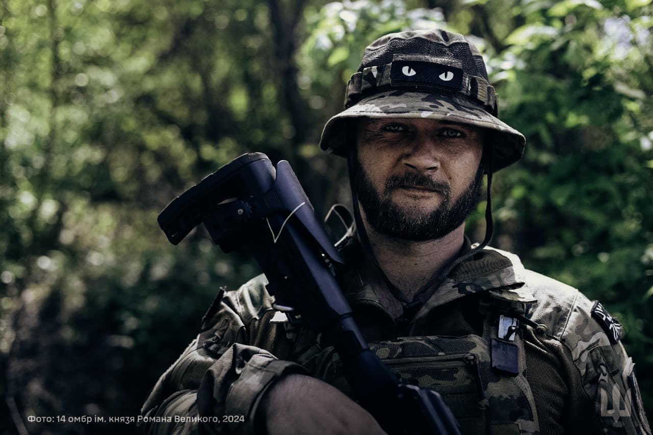 Показали фото бійців 14 окремої механізованої бригади імені князя Романа Великого, які б’ють ворога на фронті.