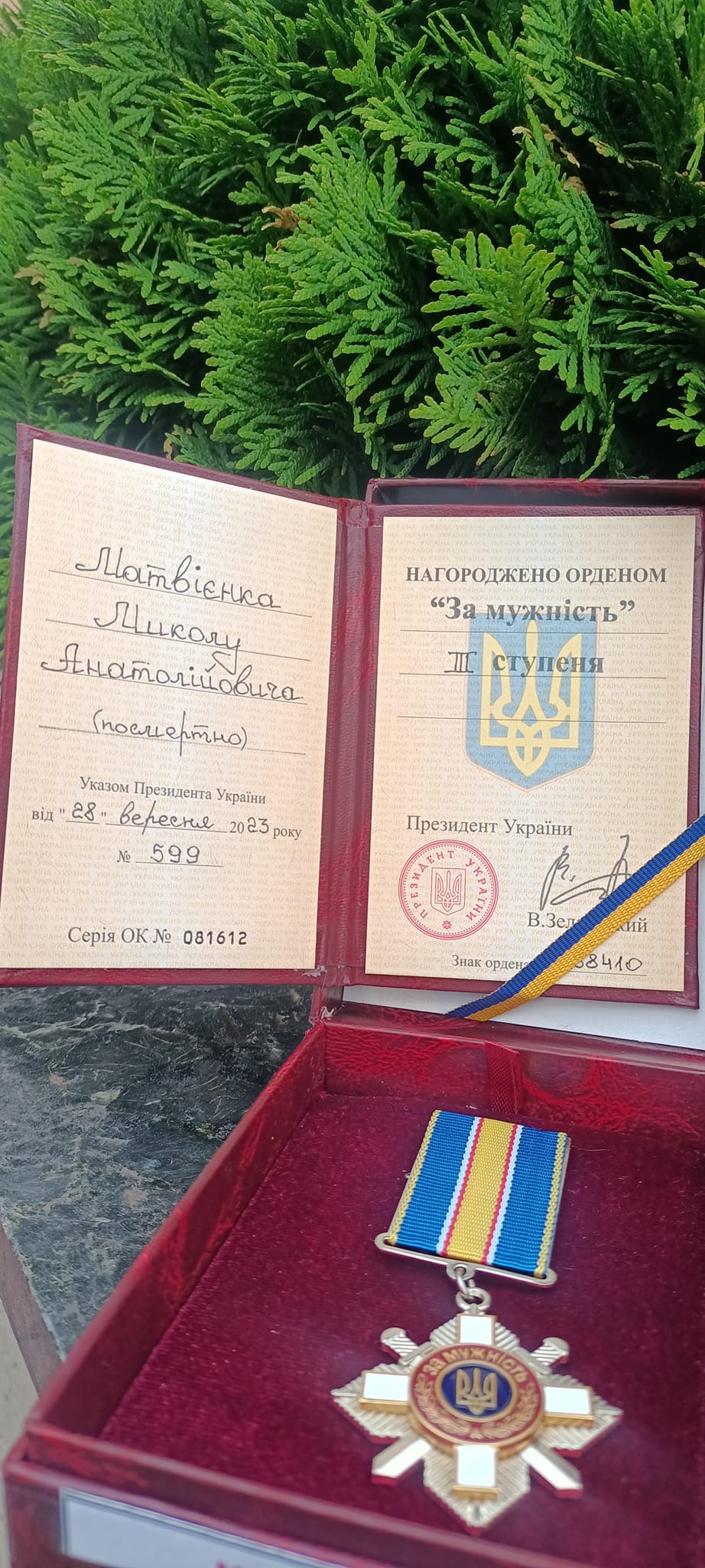 Президент України посмертно нагородив орденом «За мужність» III ступеня (посмертно) військовослужбовця з Підгайцівської громади Миколу Матвієнка.