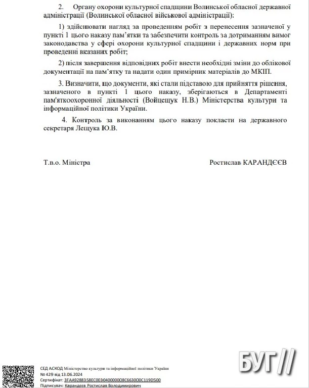 Відповідний наказ виданий 13-го червня, - пише Буг.