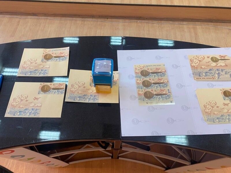 Зчіпку з двох марок урочисто погасили Валентина Варголяк разом із Сергієм Лисеюком спеціальним поштовим штемпелем, який діє 1 день – 27 червня 2024 року. Від імені колективу волинських податківців Сергій Лисеюк підписав погашений конверт з марками професійним кредо: «Працюємо на Перемогу». Відтепер цей примірник зберігатиметься у музеї Укрпошти у Києві.