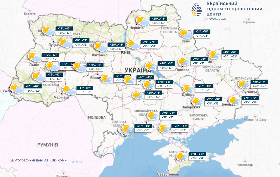 30 червня в Україні буде мінлива хмарність, температура сягатиме до 29-34° тепла.