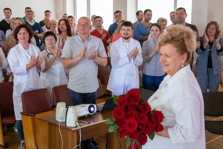 Вона також додала, що ювіляр приділяє значну увагу впровадженню сучасних високоефективних технологій та нових форм лікування. Під його керівництвом в практику роботи хірургічного відділення застосовано новітні лапароскопічні і торакоскопічні методи, набула прогресивного розвитку хірургія новонароджених.