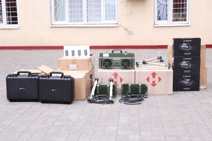 «80 акумуляторних батарей для квадрокоптерів DJI Mavic 3, два квадрокоптери DJI Mavic 3Т та 13 засобів радіоелектронної боротьби Синиця 1 та Синиця 3 передав сьогодні міський голова Ігор Поліщук для представників військової частини А4056. А для потреб розвідувальної роти цієї частини надано три тепловізійних приціли HikMicro PANTER PQ501», - йдеться у дописі.