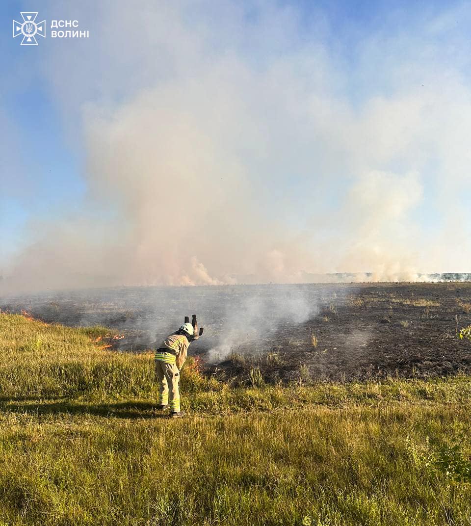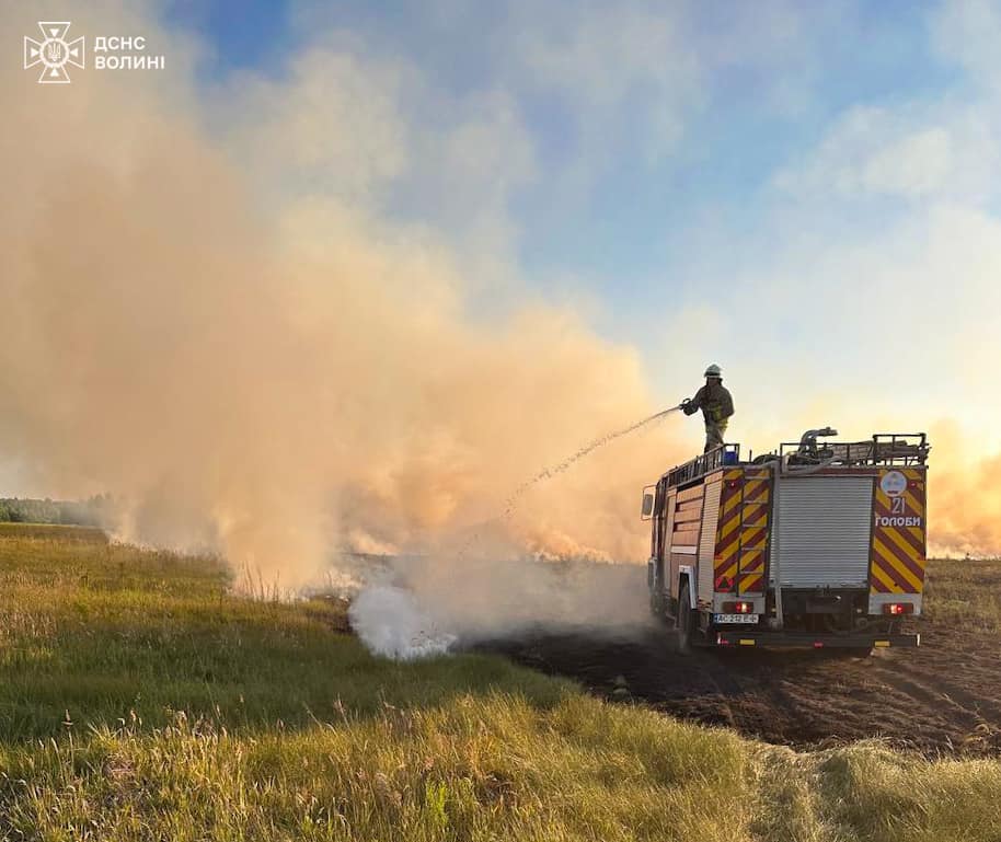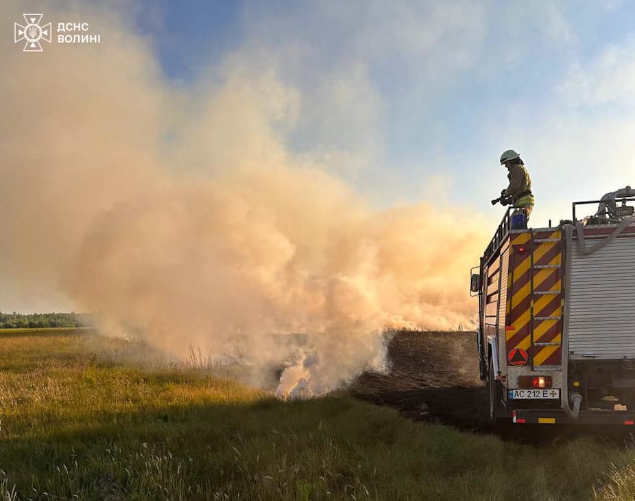 У суботу, 8 червня, о 18:50 рятувальників повідомили про пожежу сухої трави між селами Кривлин та Рудка Миринська Ковельського району.