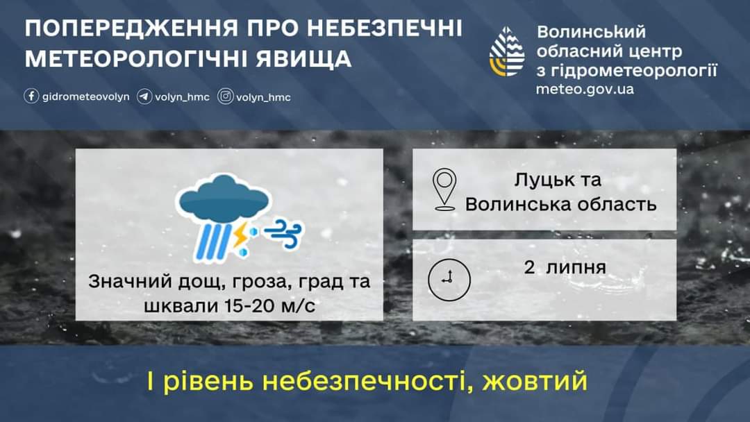 На Волині попереджають про грозу та шквальний вітер.