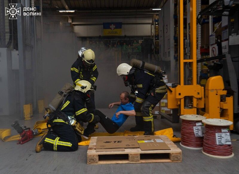 Працівники підприємства, які першими виявили ознаки умовного горіння, увімкнули систему оповіщення про пожежу та викликали службу «101», працівники формування об’єкту відпрацювали дії з гасіння займання первинних засобів пожежогасіння. На місце виклику прибули 1-а, 2-а, 25-а ДПРЧ м.Луцька, чергова зміна ОКЦ та мобільна оперативна група ГУ ДСНС області.