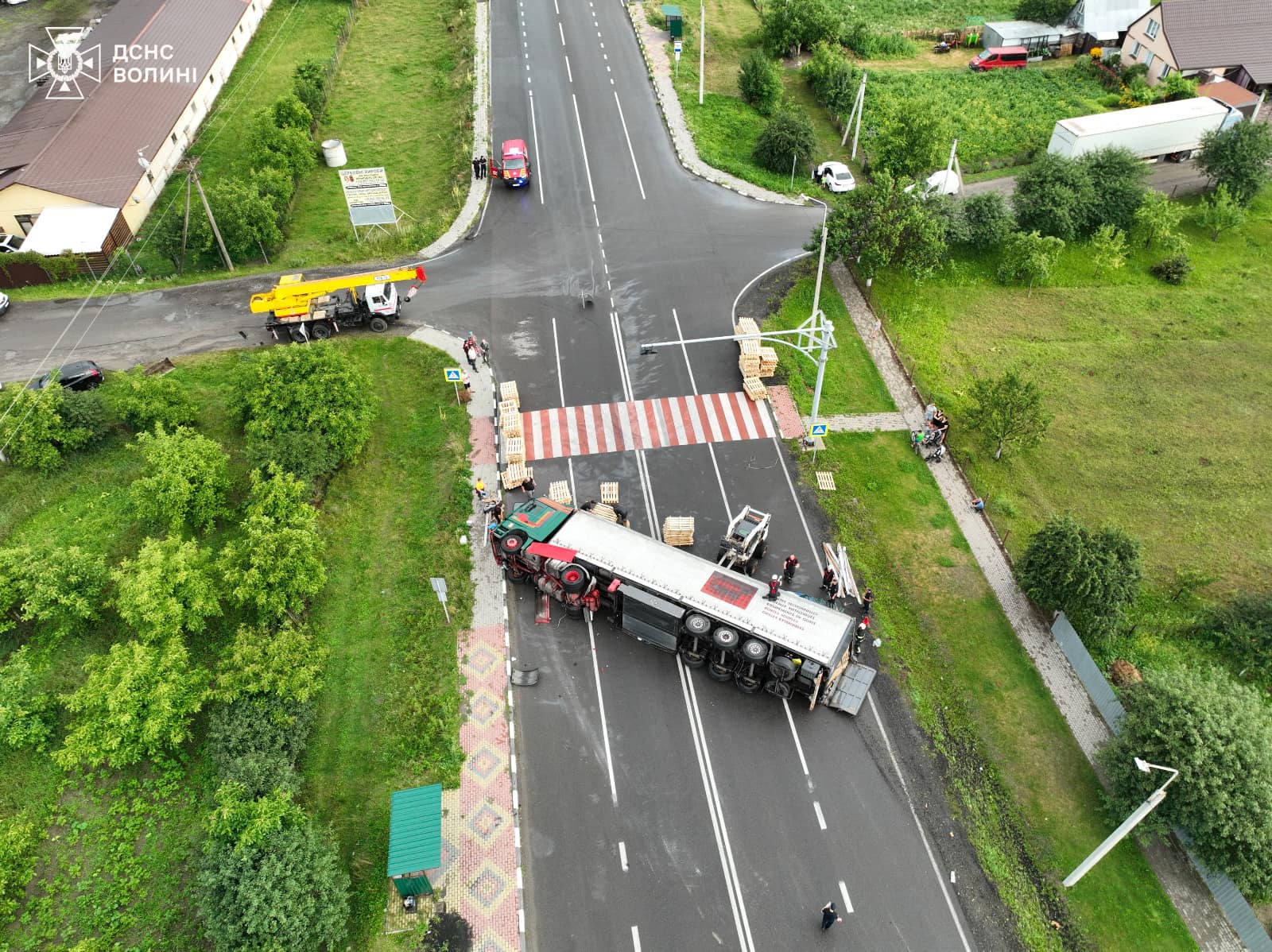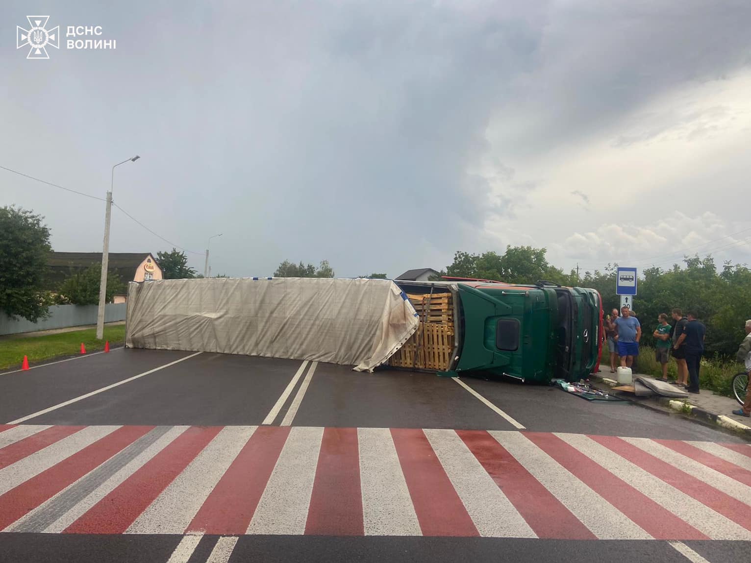Поблизу села Прилуцьке Луцького району водій вантажного автомобіля Mercedes-Benz з причіпом не впорався з керуванням, перекинувся та частково перекрив автомобільну дорогу.