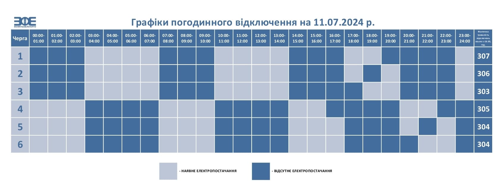 У разі відміни НЕК «Укренерго» обмежень у певні години протягом дня, загальний час коригується з урахуванням фактичного часу відключення черг та відображається у графіку на наступний день.