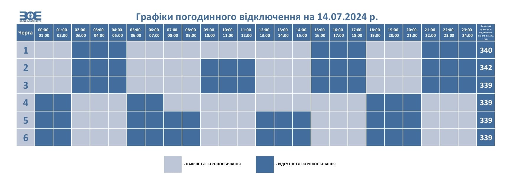 У разі відміни НЕК «Укренерго» обмежень у певні години протягом дня, загальний час коригується з урахуванням фактичного часу відключення черг та відображається у графіку на наступний день.