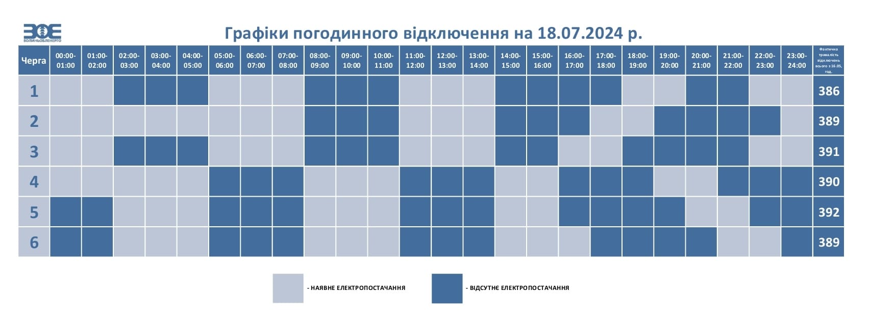 У разі відміни НЕК «Укренерго» обмежень у певні години протягом дня, загальний час коригується з урахуванням фактичного часу відключення черг та відображається у графіку на наступний день.