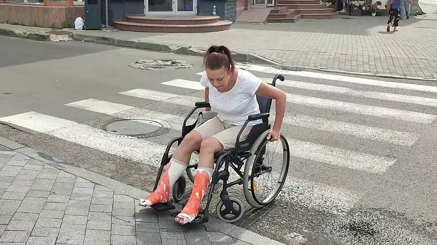 Деякі бордюри були недостатньо опущеними, щоб їх можна було подолати, пересуваючись у кріслі колісному. Також заважали вибоїни у дорожньому покритті, через що колеса застрягали й жінки лишались просто на проїжджій частині, не маючи можливості заїхати на пішохідну частину без допомоги.