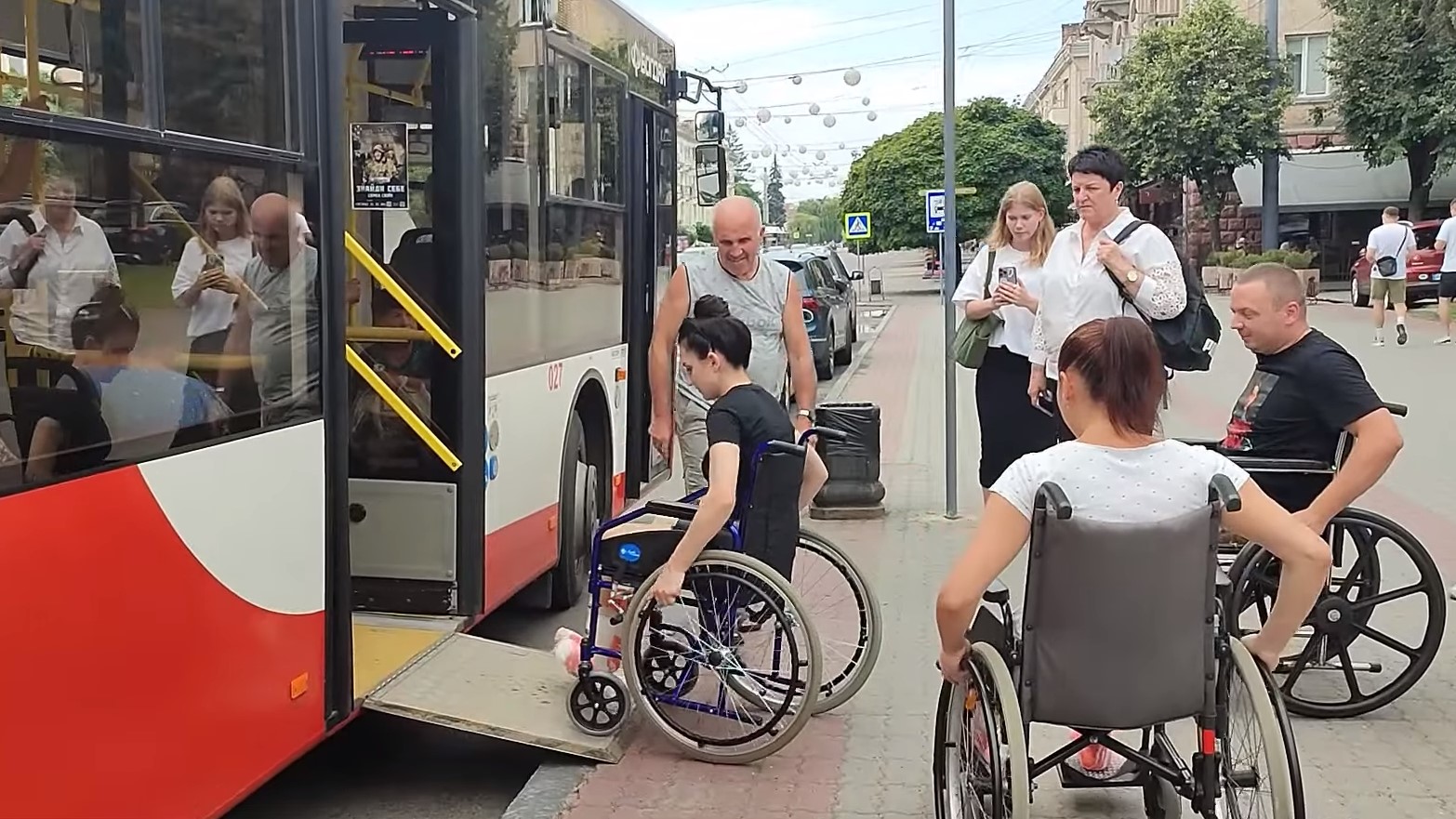 Учасники експерименту без перешкод потрапили до тролейбуса, у чому їм допоміг водій, встановивши спеціальний пандус для заїзду.