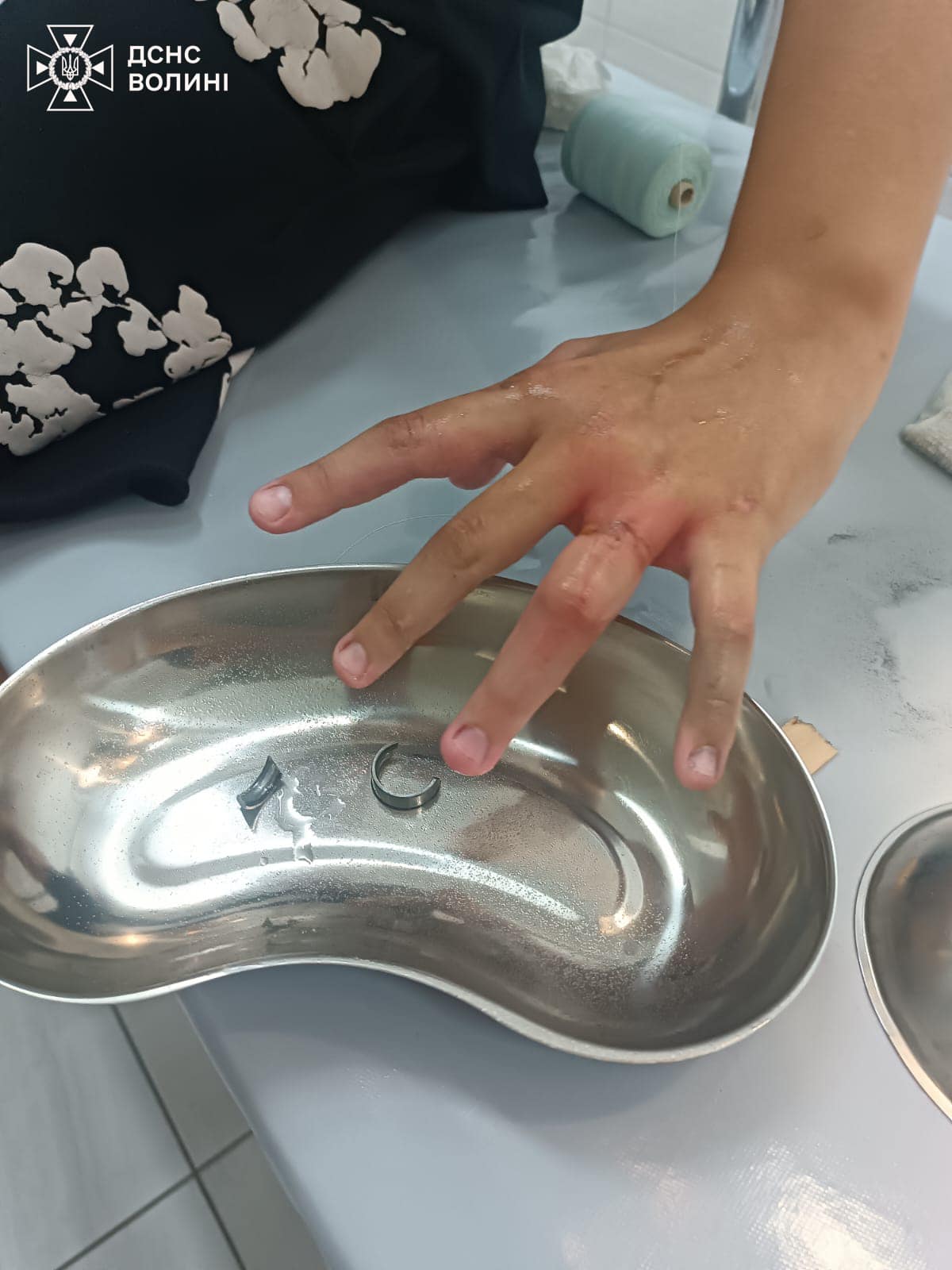 У четвер ввечері, 18 липня, рятувальників повідомили з лікарні, що у травматологічному пункті м. Луцьк, перебуває хлопчина 12 років, який одягнув на палець кільце, яке не можна самостійно зняти.