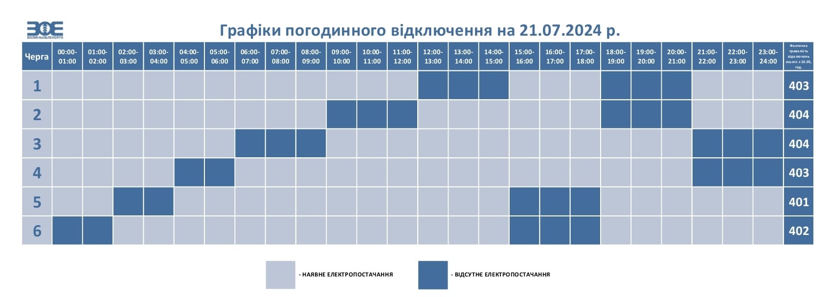 У разі відміни НЕК «Укренерго» обмежень у певні години протягом дня, загальний час коригується з урахуванням фактичного часу відключення черг та відображається у графіку на наступний день.