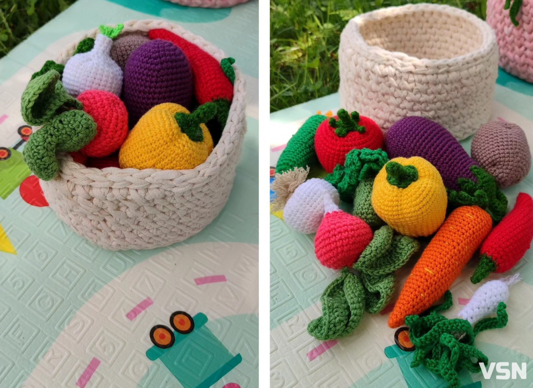 «Я прихильниця не лише безпечних іграшок, а й тих, які допомагають розвивати дитину. Набір овочів не тільки знайомить малечу із їстівними овочами, а й допомагає в ігровій формі розвивати дрібну моторику та уяву. Всі мої вироби безпечні, неалергічні, адже використовую тільки якісні нитки й наповнювач. Їх можна і потрібно прати, щоправда, лише руками. Щоб нитки не розтягнулися, сушити треба делікатно, не підвішуючи, а поклавши на якусь поверхню», – знайомить із процесами догляду рукодільниця.