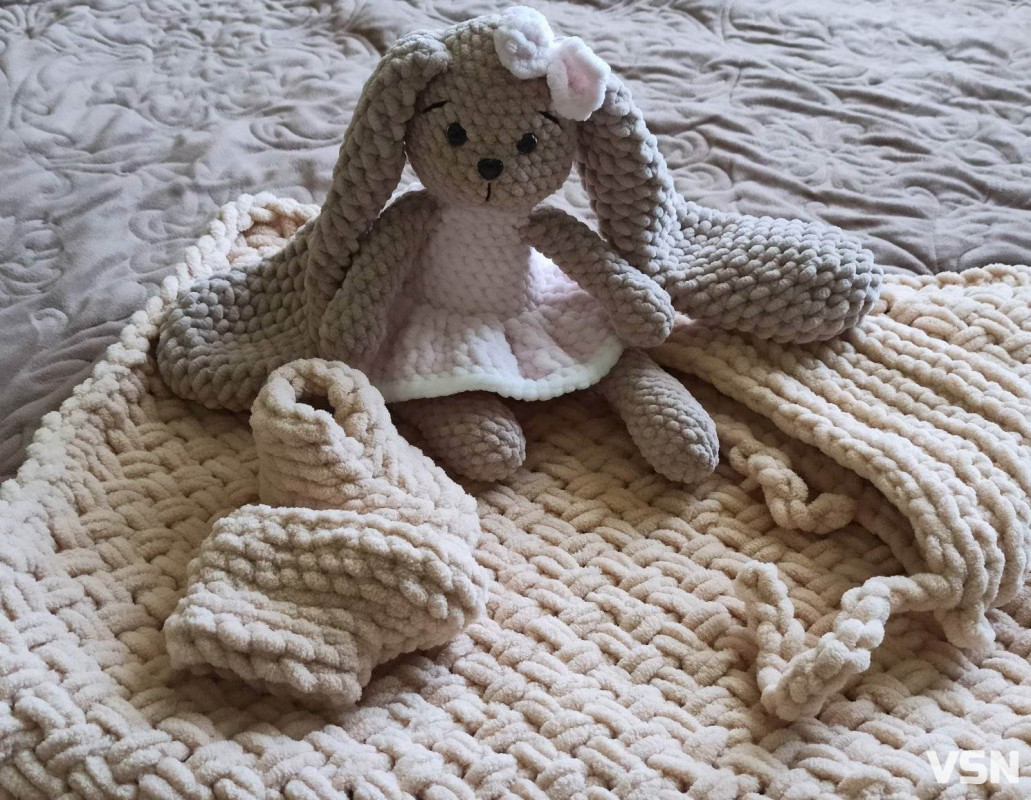 «Рідні і друзі почали замовляти у мене вироби: показують фото і я беруся за роботу. Особливою популярністю серед хлопчиків користується синій трактор, дівчатка люблять зайченят, єдиноріжок, героїв мультфільмів. Розробила й подарунковий набір для найменших, що складається із пледика, зайченятка, пінеток та шапочки, іменні крижми на хрещення. Цікавий та оригінальний подарунок – піжамниця-єдиноріг, яку можна використовувати як іграшку і як комфортер для сну та для зберігання піжами», – розповідає майстриня.
