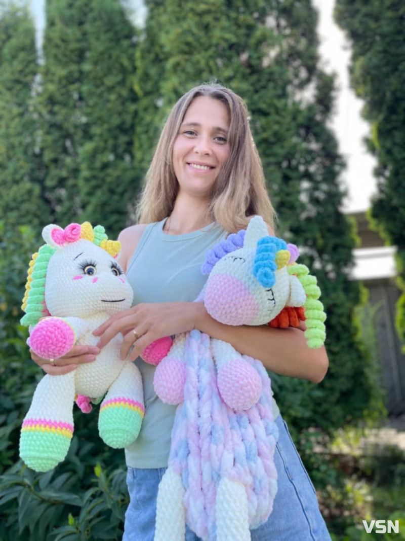 «Якось натрапила в інтернеті на в’язані іграшки, вони мене настільки захопили, що просто мусила навчитися й собі робити. Часто бачу лише фото виробу, а схем немає, тоді сама розробляю їх і починаю в'язати. Звісно, не завжди виходить із першого разу, але не зупиняюся, пробую і далі творю», – із захопленням розповідає рукодільниця.