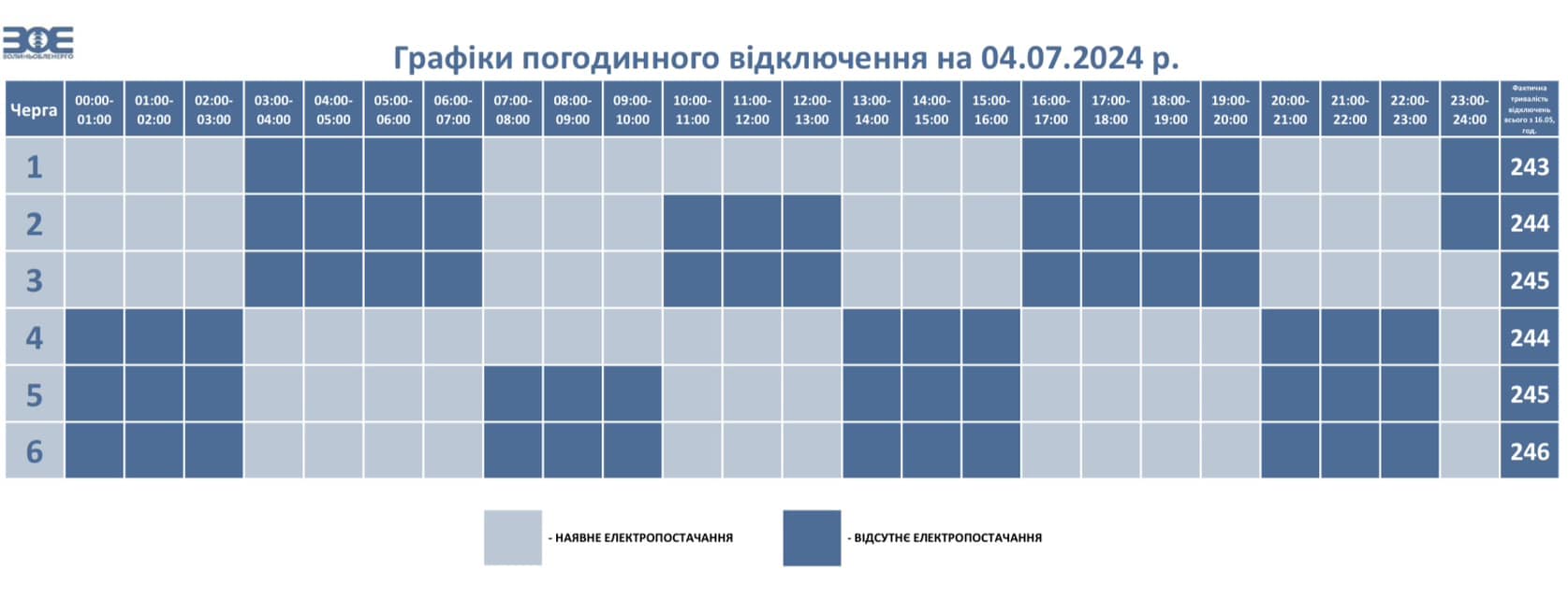 У разі відміни НЕК «Укренерго» обмежень у певні години протягом дня, загальний час коригується з урахуванням фактичного часу відключення черг та відображається у графіку на наступний день.