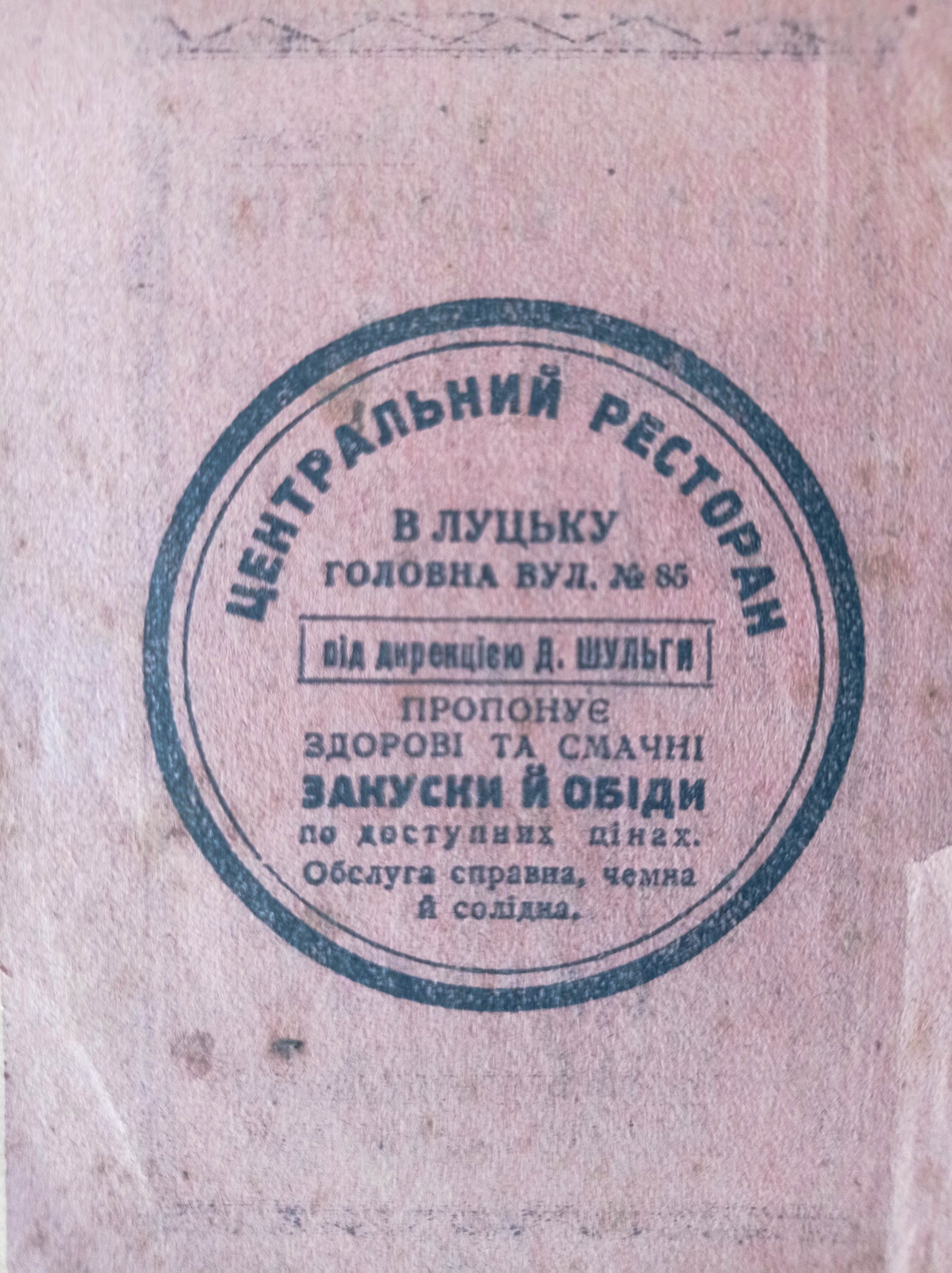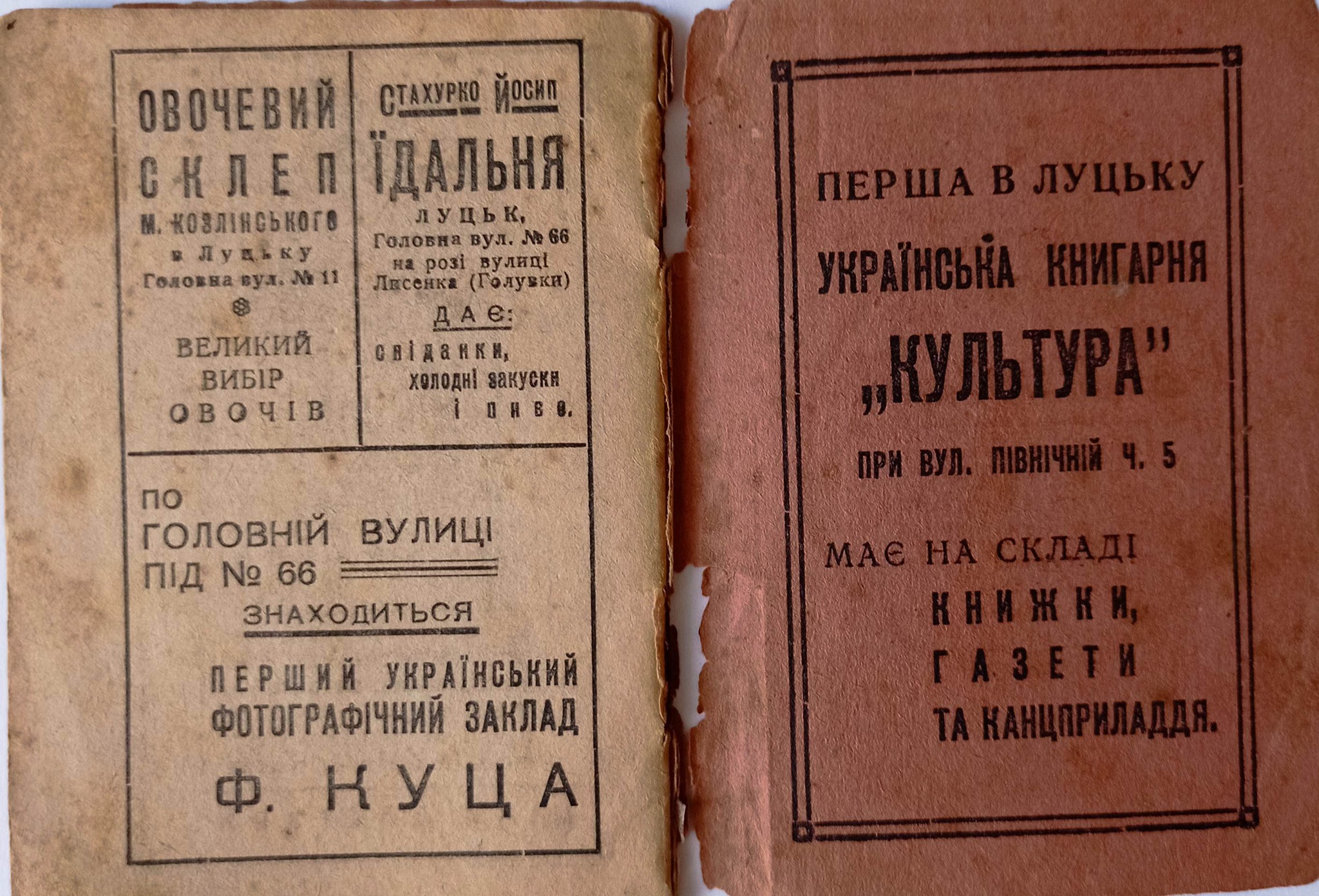 Також на сторінках музейники знайшли рекламу Центрального ресторану Луцька, їдальні Йосипа Стахурко, овочевого магазину та української книгарні.