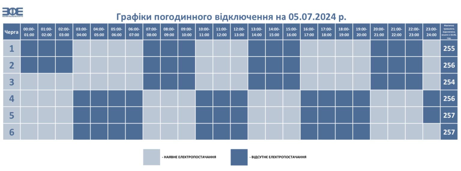 У п‘ятницю, 5 липня, на Волині діятимуть графіки погодинного відключення електроенергії.