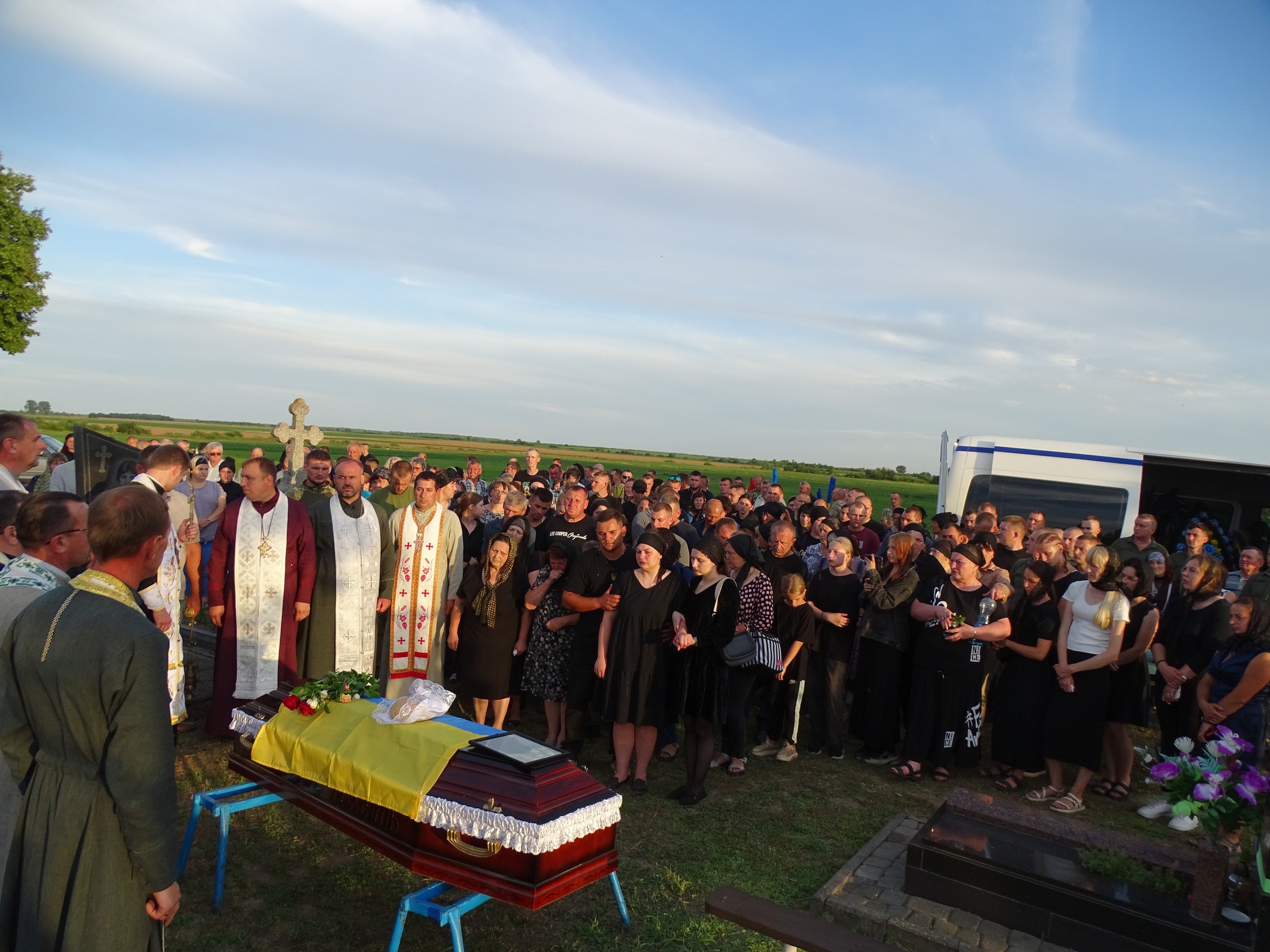 З військовими почестями загиблого воїна провели в останню земну дорогу. За його душу піднеслася спільна молитва, на його честь прозвучав Державний Гімн, тричі «Слава!» і військовий салют.