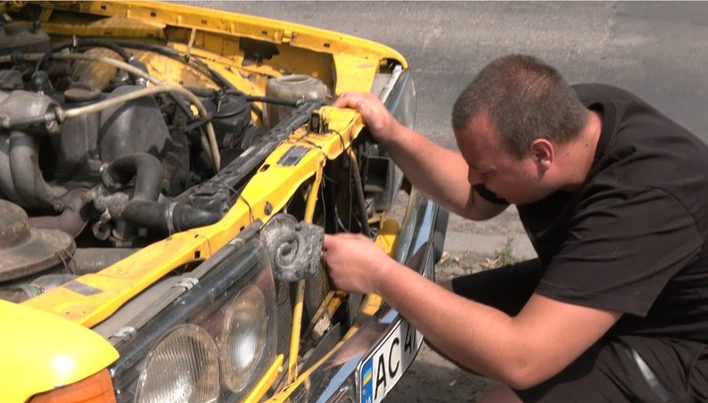 Лучанинові Сергію внаслідок вибуху осколками побило авто. Зі слів чоловіка, уламок гранати пробив радіатор у машині і пошкодив фари.