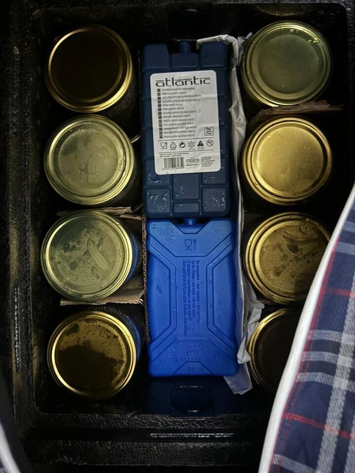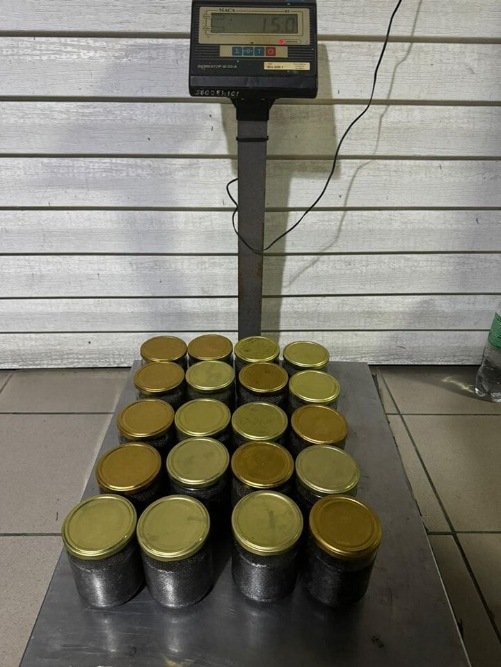 Під час огляду багажного відділення оглядова група знайшла в термосумці 20 скляних банок з чорною ікрою.
