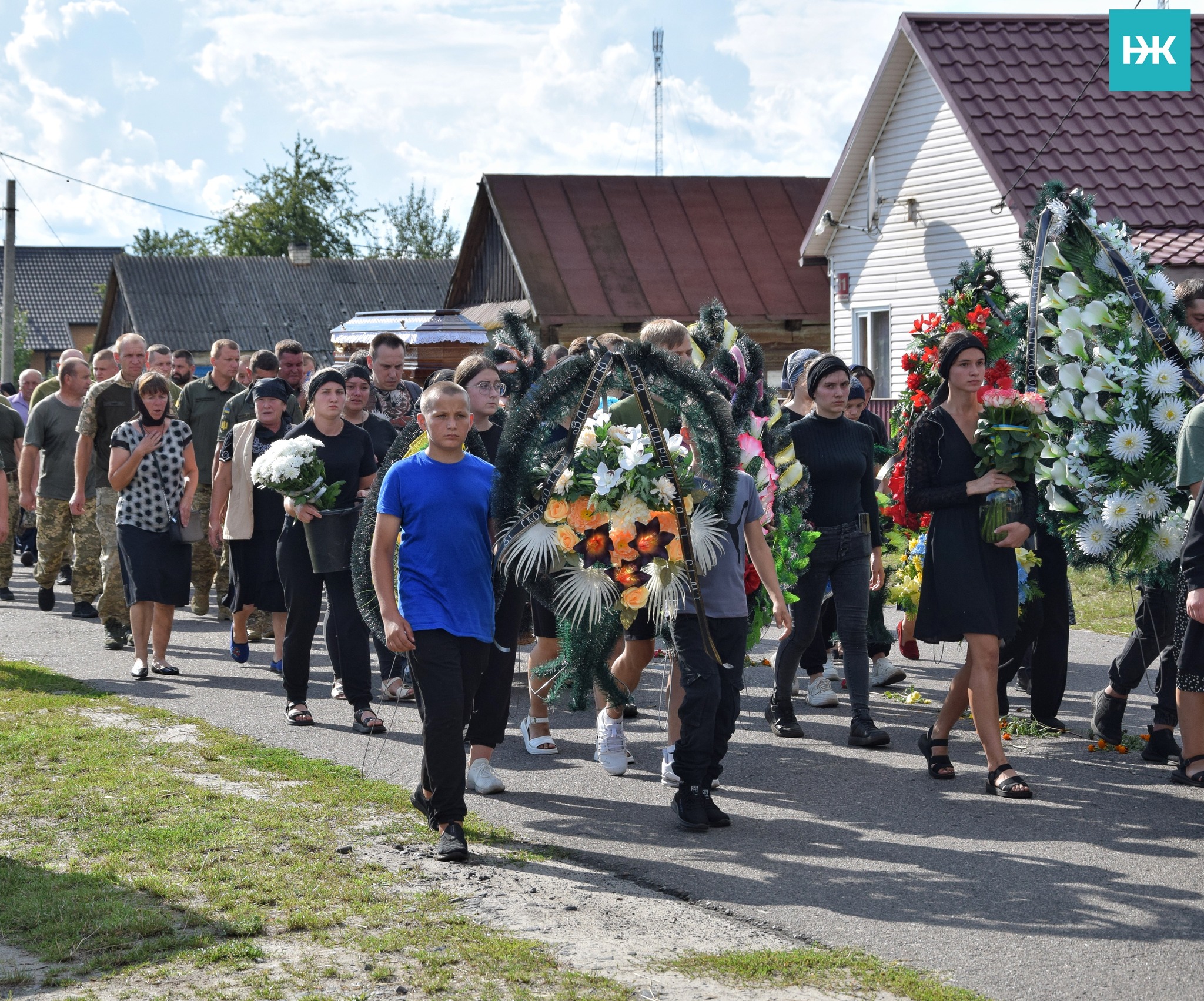 «Сьогодні багатолюддям провели в останню дорогу молодого, мужнього воїна із села Гірки Василя Канюку. Коровай розділили не на весіллі. Гірким він був від сліз та горя...», - йдеться у дописі.