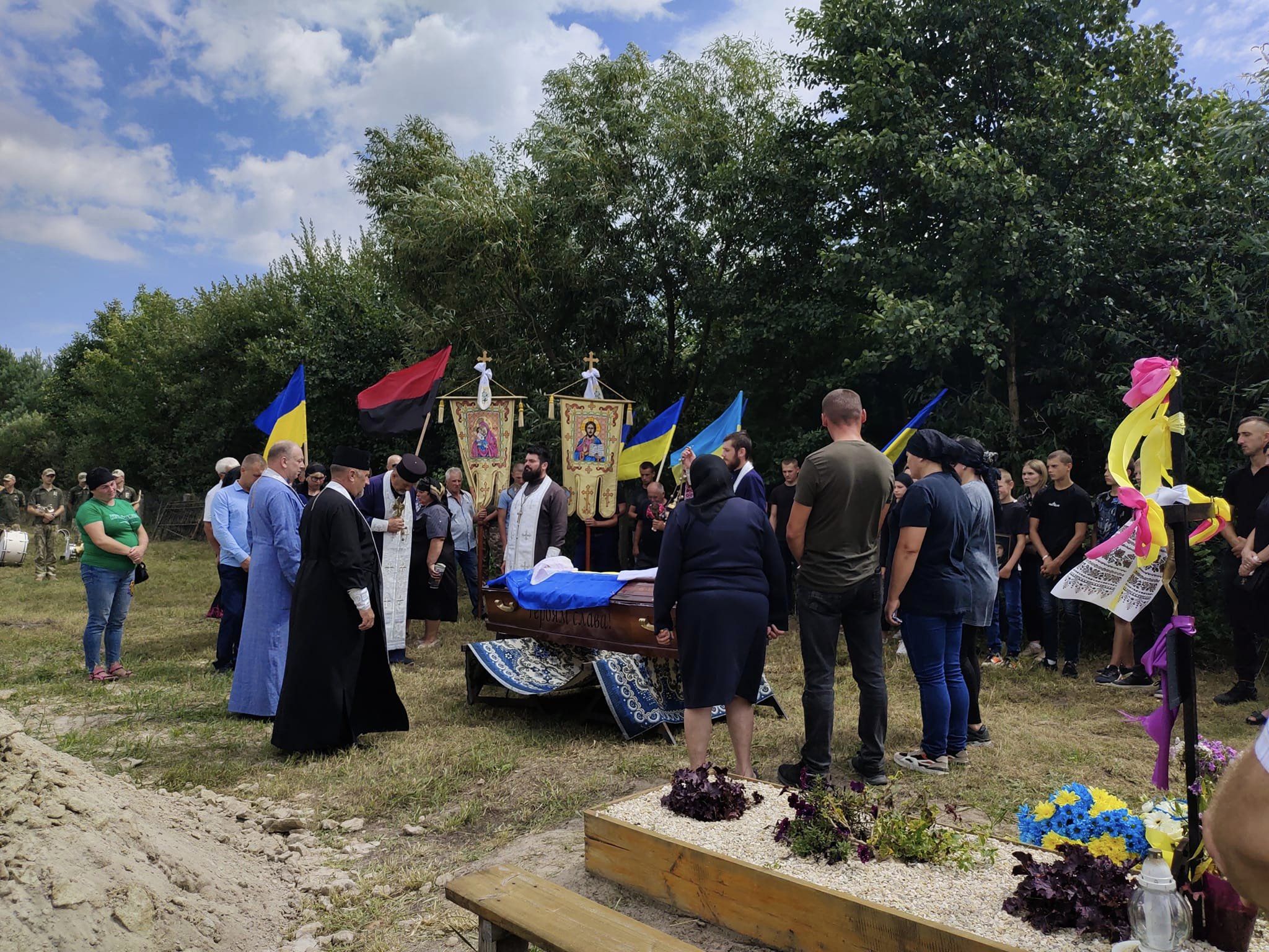Церемонія поховання зібрала численну скорботну громаду, яка облишила всі справи, і прийшла віддати данину шани своєму молодому захисникові. Провести мужнього сина України, відданого патріота України прийшли односельчани, друзі, найближчі та найрідніші люди, однокласники, священники, жителі сусідніх сіл. Приїхали його бойові побратими, а з Тернопільщини - голова Підлозцівської ОТГ Микола Костюкевич, мама бойового побратима Юрка Поляка.
