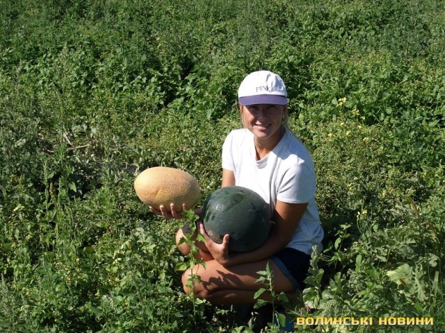 «Ми їх посадили цьогоріч на пробу на двох гектарах. Дині добре виросли, і смакові якості у них відмінні. Проте у нас в області для цієї культури забагато вологи, і вона дуже швидко псується. Вчора вибрали, а сьогодні вже з дефектами. Дині більше підходить сухіший клімат. Кавуни виявилися невибагливими, їм на Волині вистачило сонця і вологи. Цьогоріч плануємо їх реалізовувати насамперед по області», — каже співвласниця.