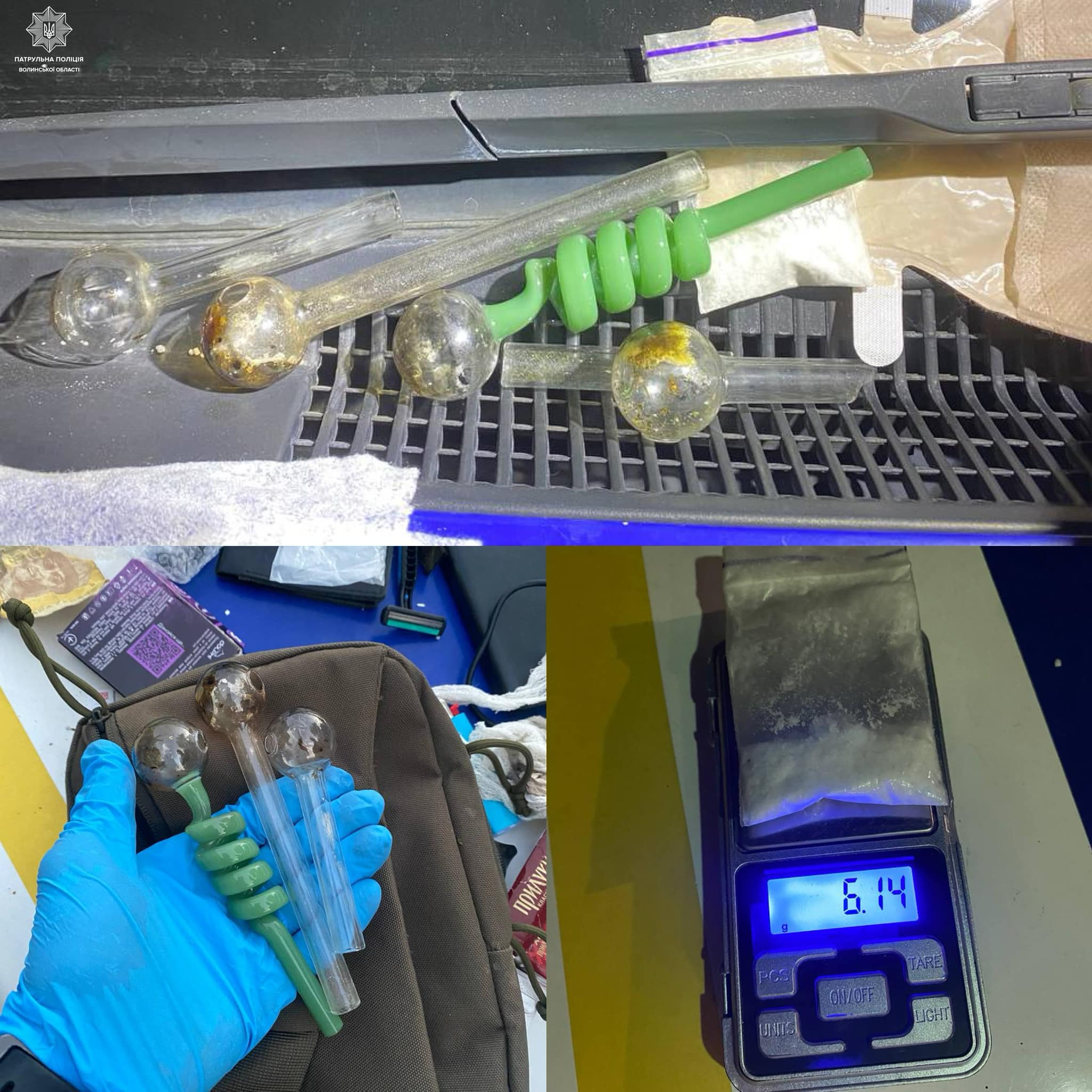 У результаті у 31-річного чоловіка виявили два зіп-пакети з речовиною, схожою на наркотики, а у його 24-річного супутника — прилади для куріння.