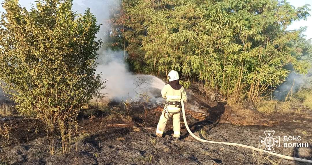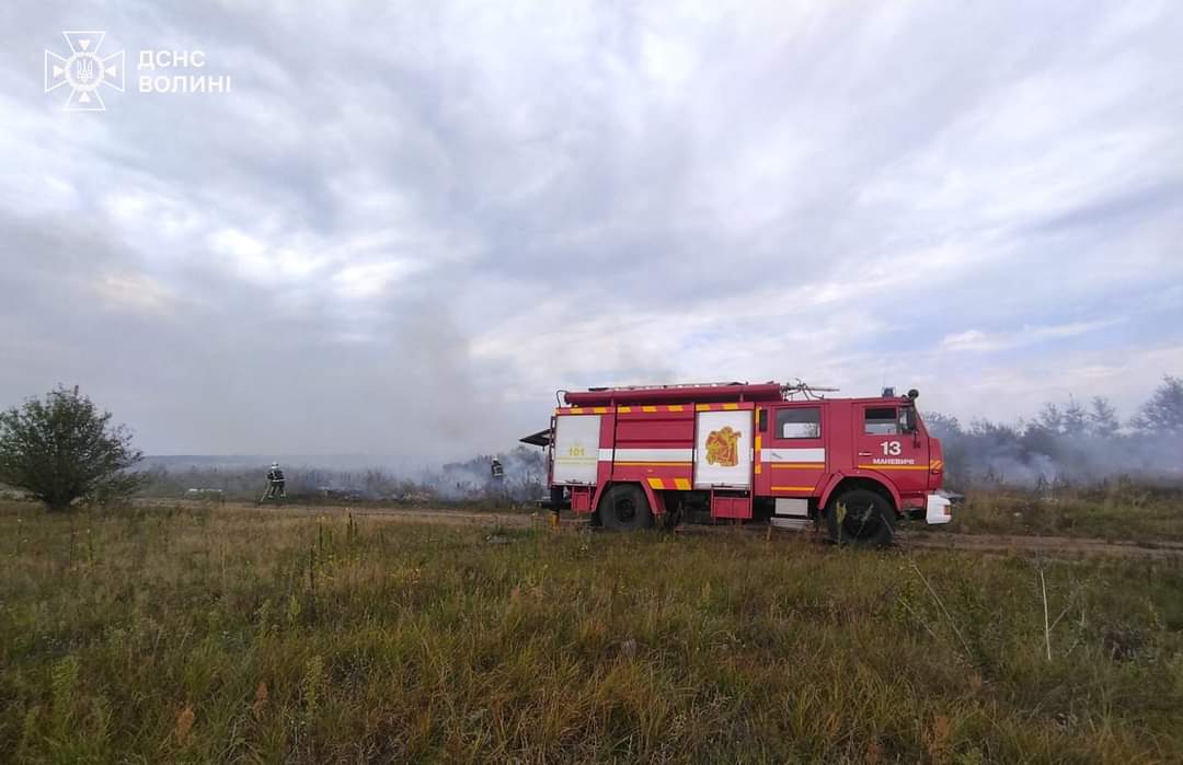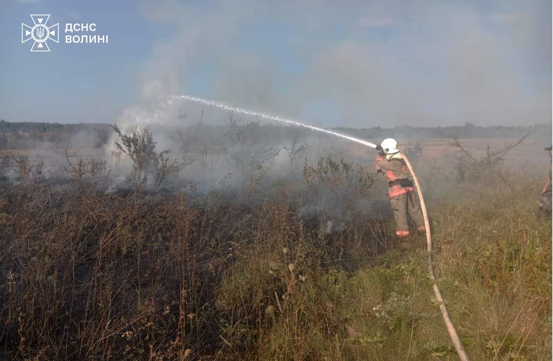 Пожежі сухої трави приборкано поблизу с. Обенижі Турійської громади Ковельського району, сіл Городище-1 та Клепачів Луцького району, с. Вербка Дубівської громади Ковельського району.