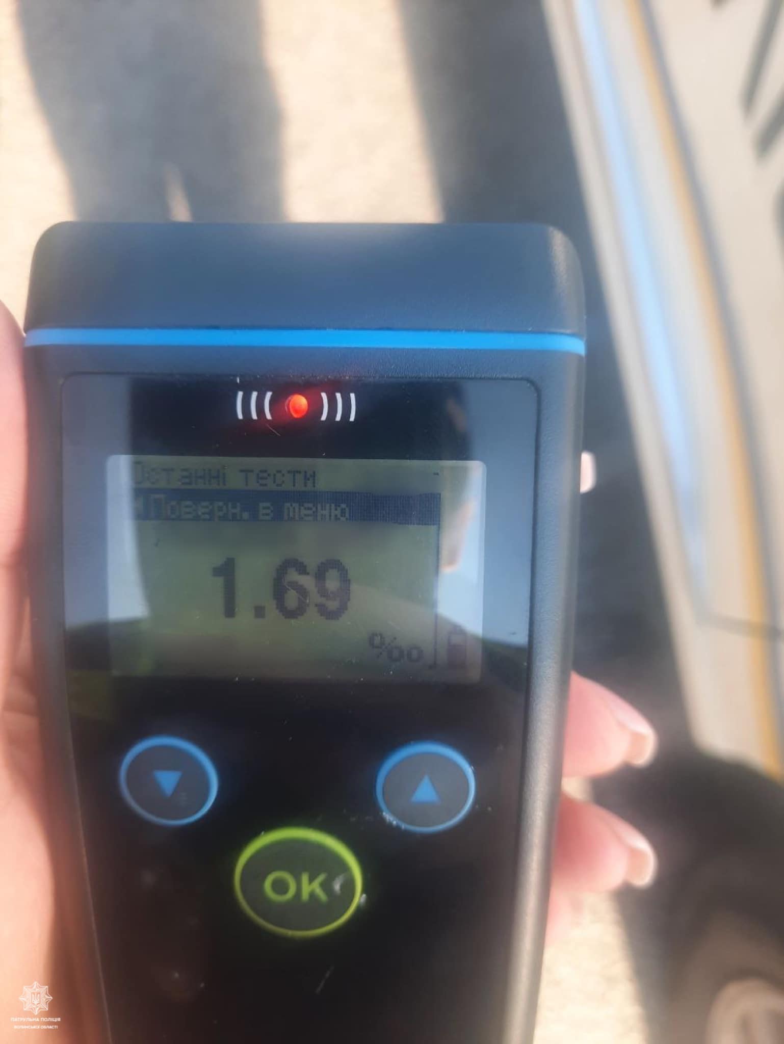 Під час спілкування з винуватцем ДТП патрульні помітили у нього ознаки алкогольного сп'яніння. Проведений огляд підтвердив підозри — рівень алкоголю в крові чоловіка становив 1,69 проміле.
