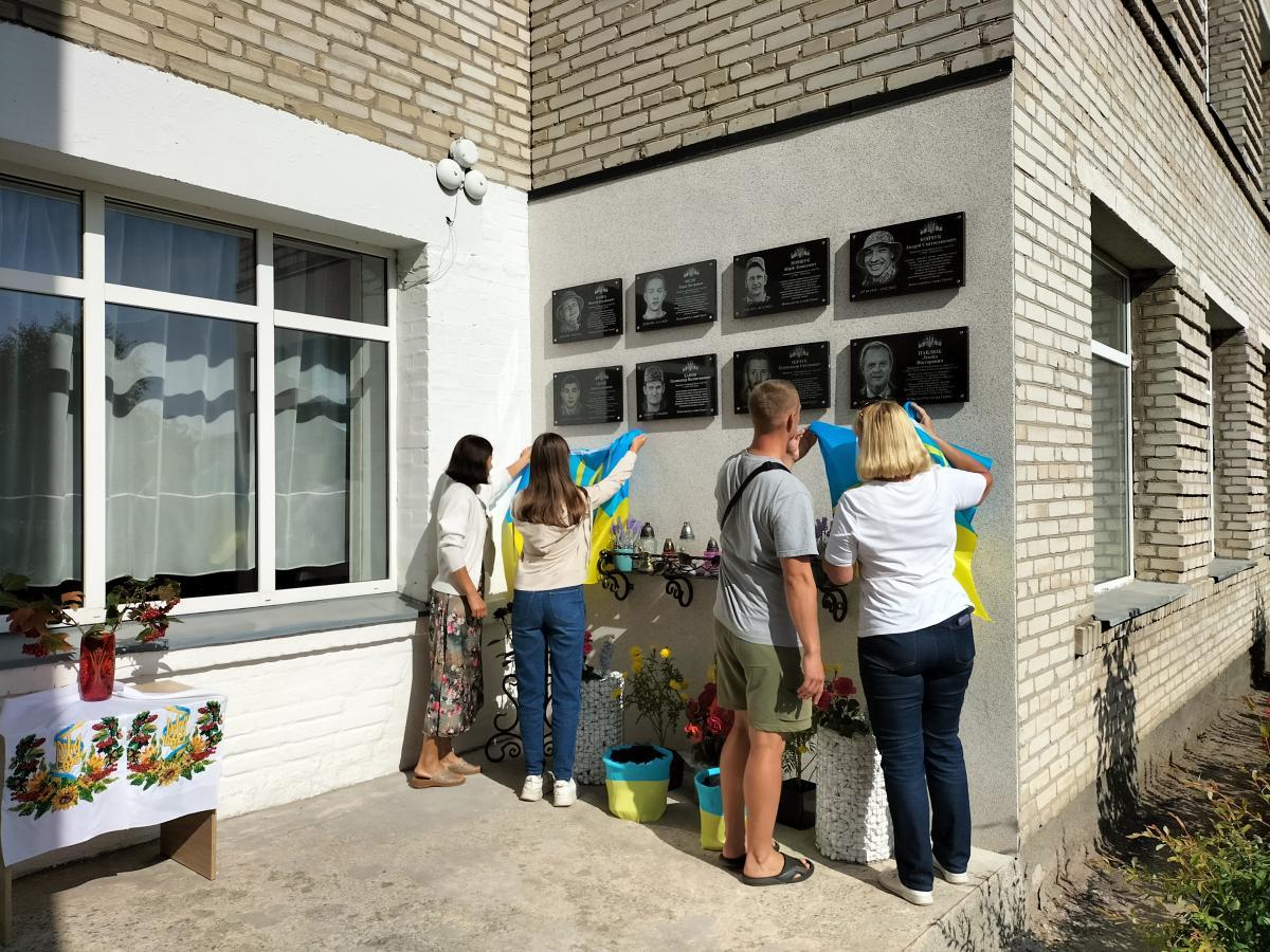Хвилиною мовчання учасники заходу вшанували пам'ять загиблих героїв. Пам'ятні дошки були урочисто відкриті рідними загиблих, які разом із присутніми просили Всевишнього упокоїти душі Героїв та допомогти Україні перемогти у боротьбі за незалежність.