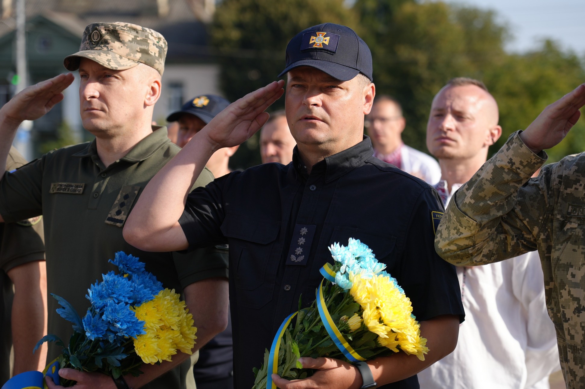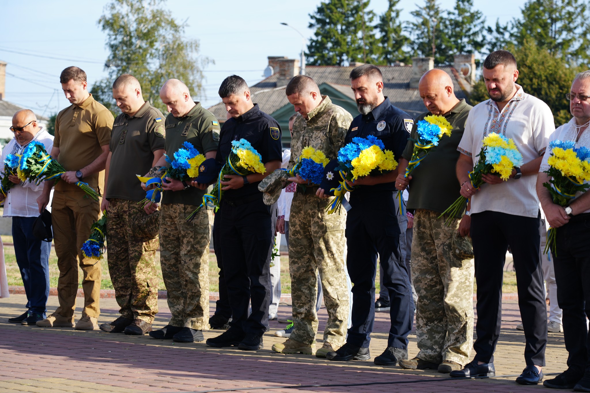 Посадовці ДСНС разом із керівниками органів влади, поліцейськими, військовими та громадськими активістами вшанували хвилиною мовчання борців, які віддали своє життя за свободу та незалежність нашої держави.