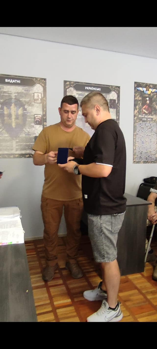 Також нагороджений командир 55 окремого батальйону територіальної оборони України, молодший сержант Сергій Скрипник відзнакою «За оборону України».