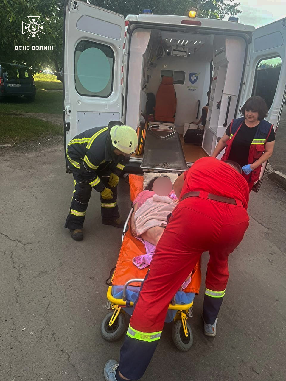 «Відкривши вхідні двері, рятувальники надали доступ працівникам екстреної медичної допомоги, а тоді разом винесли на ношах потерпілу до карети швидкої», - йдеться у дописі.