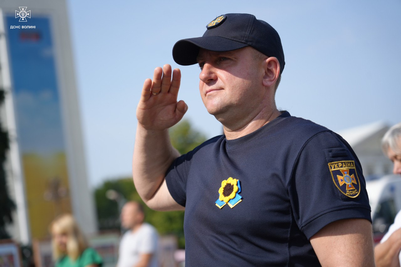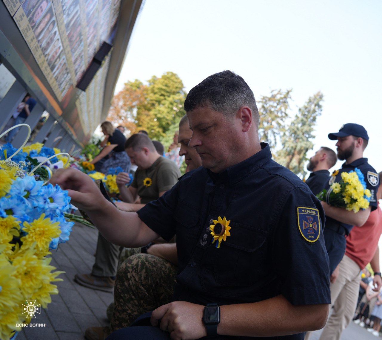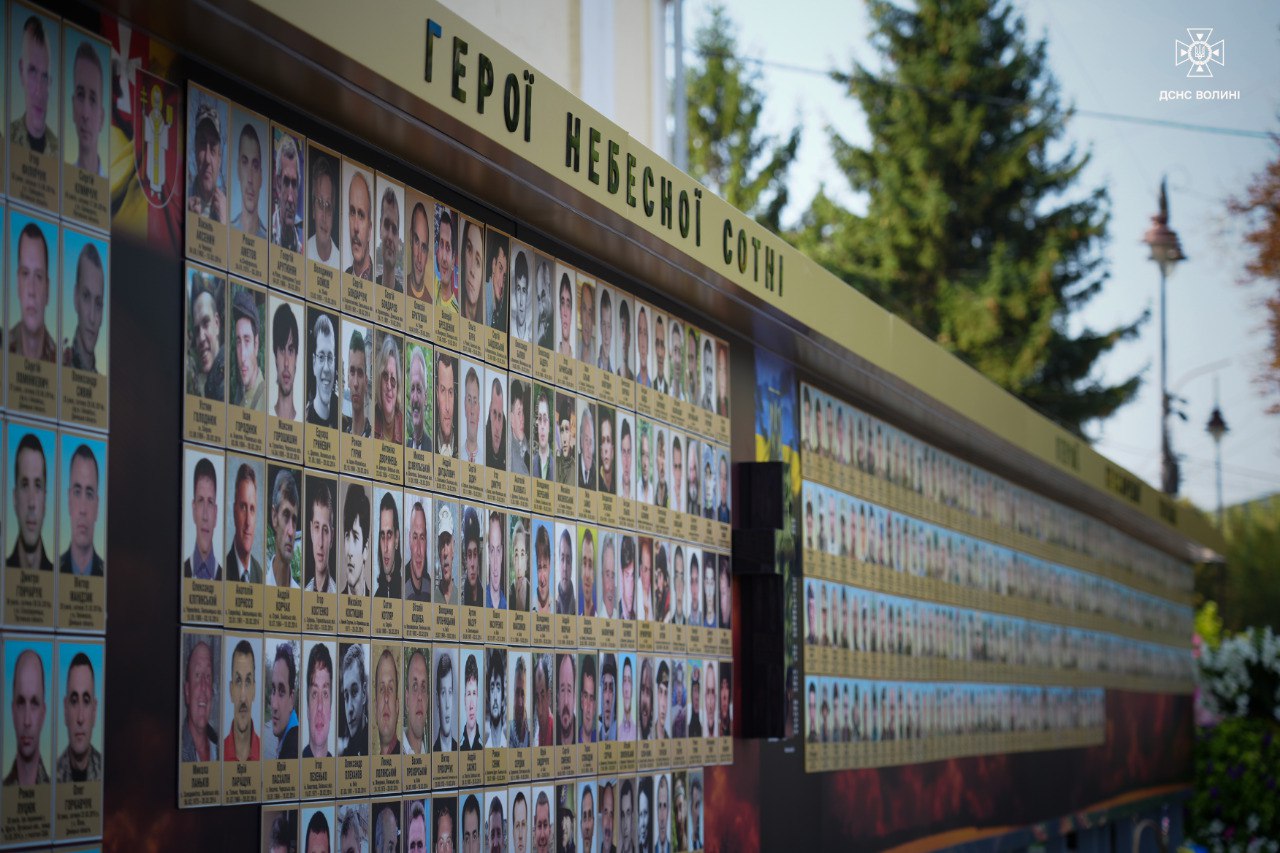 Представники громадськості, правоохоронних структур та органів влади, серед яких начальник Головного управління ДСНС України у Волинській області Мирослав Демянчук, вшанували загиблих і поклали квіти до фотостенду «Герої Небесної Сотні — Загинули за єдність України».