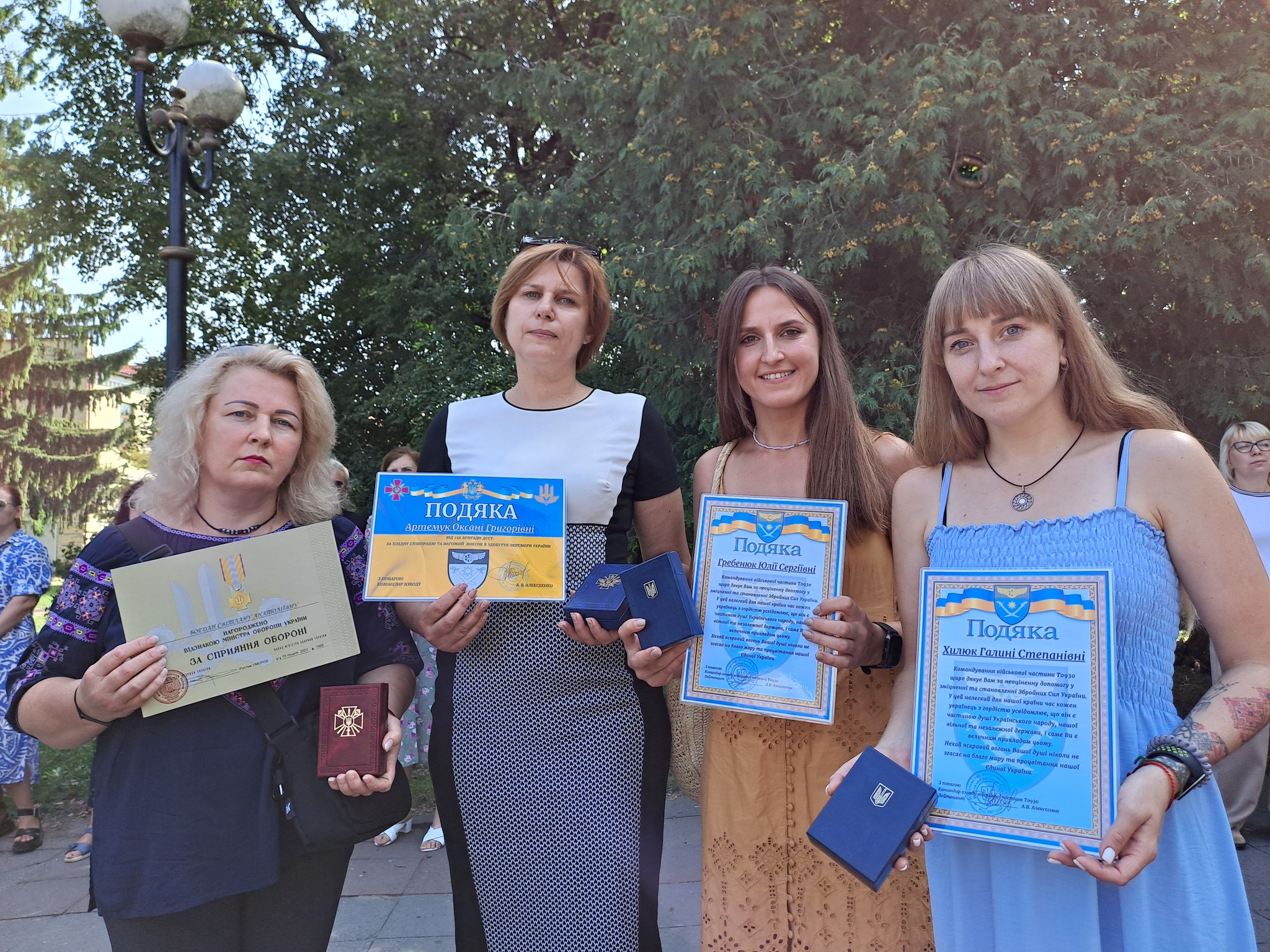 Подяками командування військової частини за неоціненну допомогу у зміцненні та становленні Збройних Сил України та медалями «Волонтер – з Україною в серці» нагороджено Юлію Гребенюк та Галину Хилюк.
