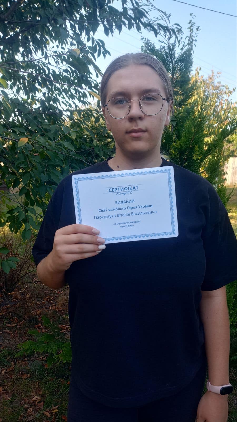 29 серпня, у День вшанування пам’яті полеглих захисників, Президент Володимир Зеленський вручив доньці загиблого Героя України Віталія Пархомука Софії сертифікат на отримання квартири в Києві.