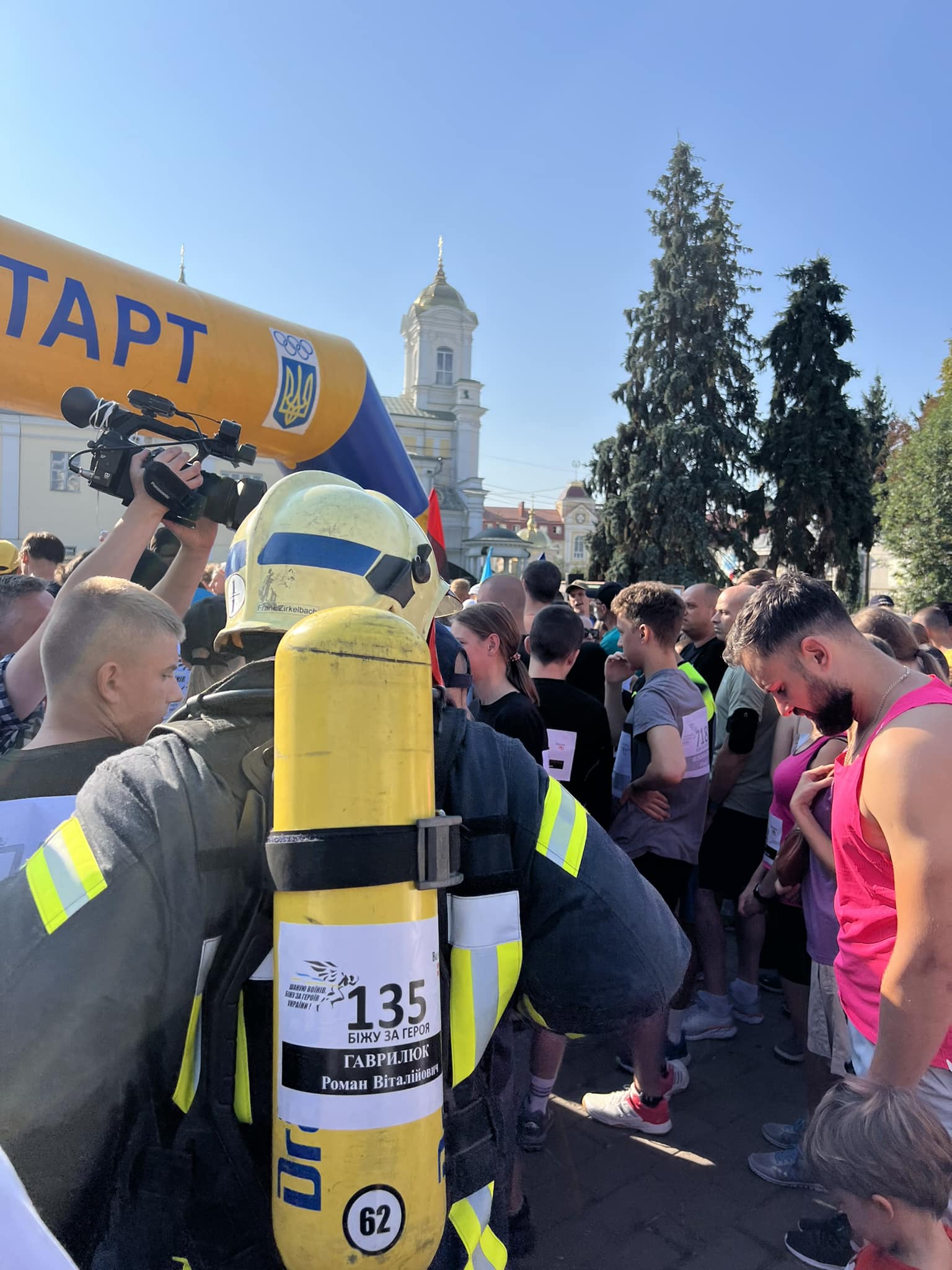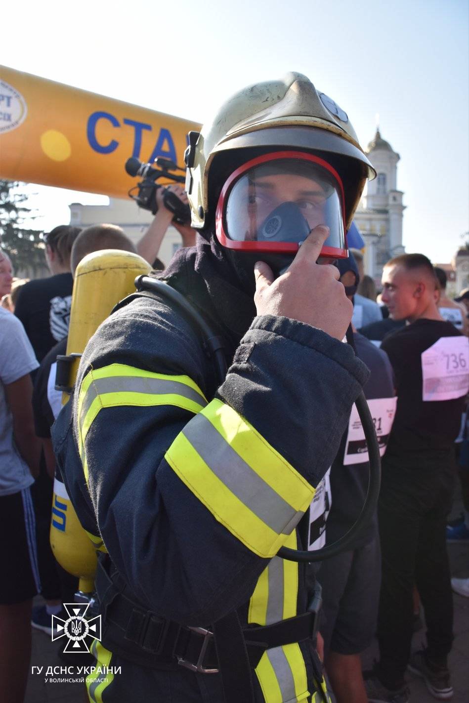 У Луцьку відбувся забіг «Шаную воїнів, біжу за Героїв України!», в якому взяли участь понад двадцять рятувальників, деякі з них бігли у бойовому одязі та споряджені, а начальник 1 ДПРЧ м. Луцька Дмитро Журавський традиційно біг включеним у апарат на стисненому повітрі.