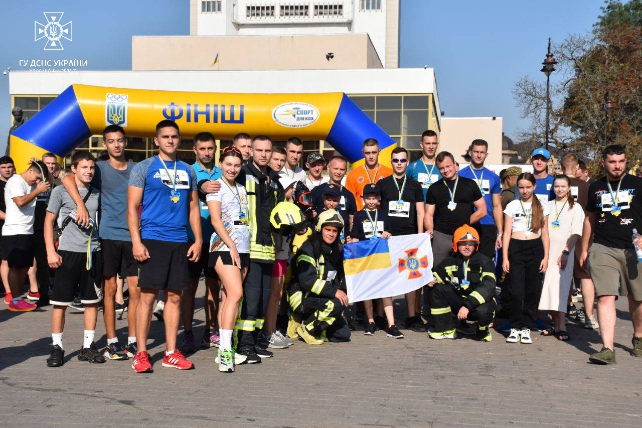 Дорослі та юні рятувальники долали дистанцію разом з іншими учасниками забігу в знак пам’яті про Героїв України, які загинули на війні та у знак підтримки військовослужбовців, які захищають нашу державу від російської агресії.