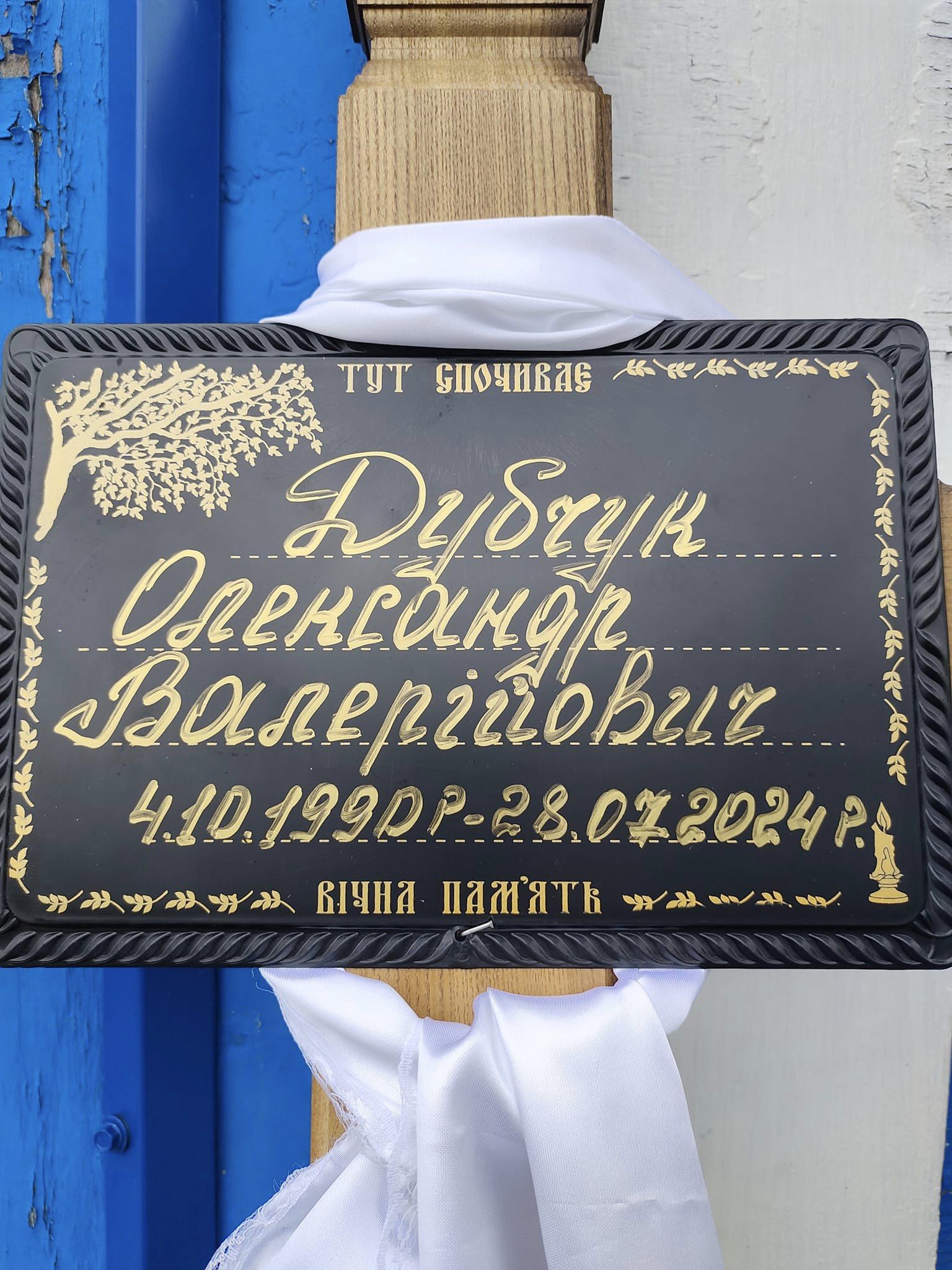 Росія, яка напала на нашу країну, поламала ці плани. У травні 2024 року Олександр був мобілізований. Не довгим був його бойовий шлях, всього три тижні на передовій. Ворожий дрон забрав його молоде життя.