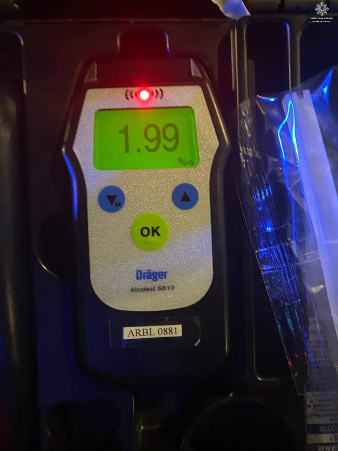 Під час спілкування з винуватцем, інспектори помітили у нього ознаки алкогольного сп’яніння. Чоловік пройшов огляд на місці, результат — 1, 99 проміле.
