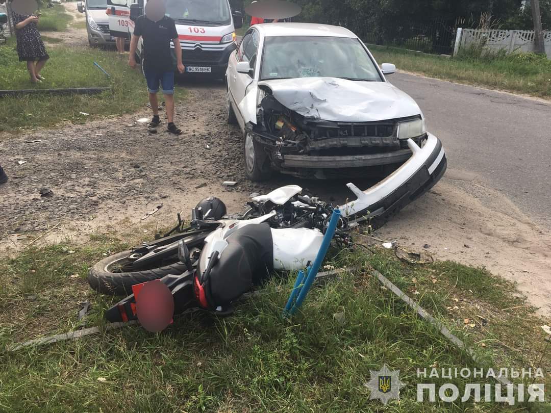 У селі Заболоття 15-річний керманич мотоцикла Lifan не врахував дорожню обстановку, виїхав на зустрічну смугу руху та зіткнувся із автомобілем Volkswagen. За кермом авто перебувала 37-річна жителька сусіднього населеного пункту. Підлітка з травмами госпіталізували до місцевої лікарні.