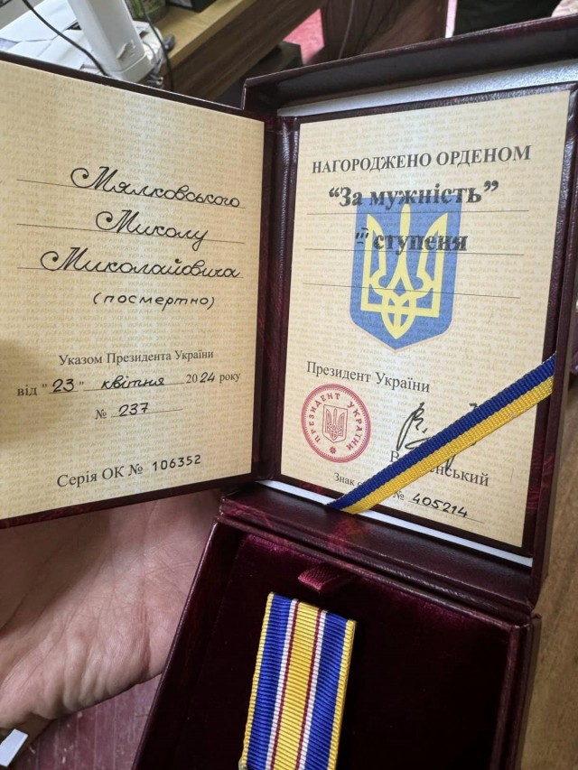 Моєму синові Миколі Мялковському присвоєно медаль за відвагу. Посмертно. Слава Герою!» – йдеться в повідомленні.