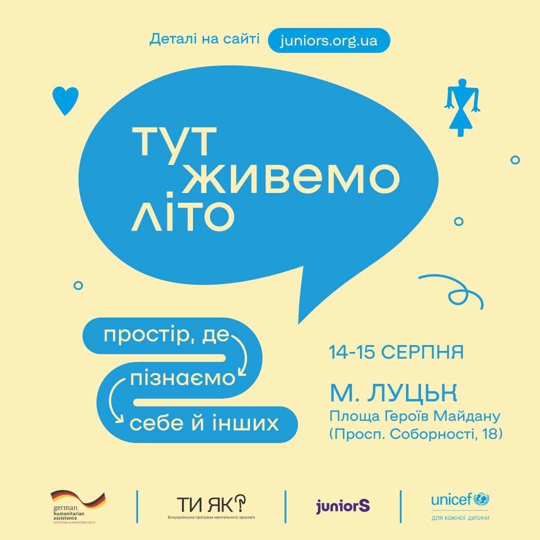 14 та 15 серпня у Луцьку пройде фестиваль «Тут живемо літо» для молоді, підлітків та їхніх батьків. Вхід вільний, попередня реєстрація не потрібна.