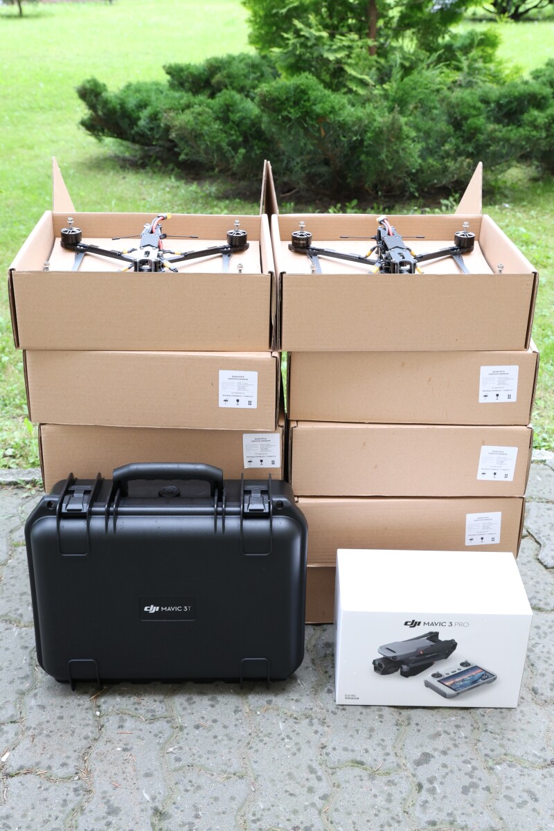 А для військової частини А7126 передано 10 безпілотних літальних апаратів БпЛА “РАПТОР 8” з денною камерою, один квадрокоптер DJI Mavic 3 Thermal та один квадрокоптер DJI Mavic 3 Pro.