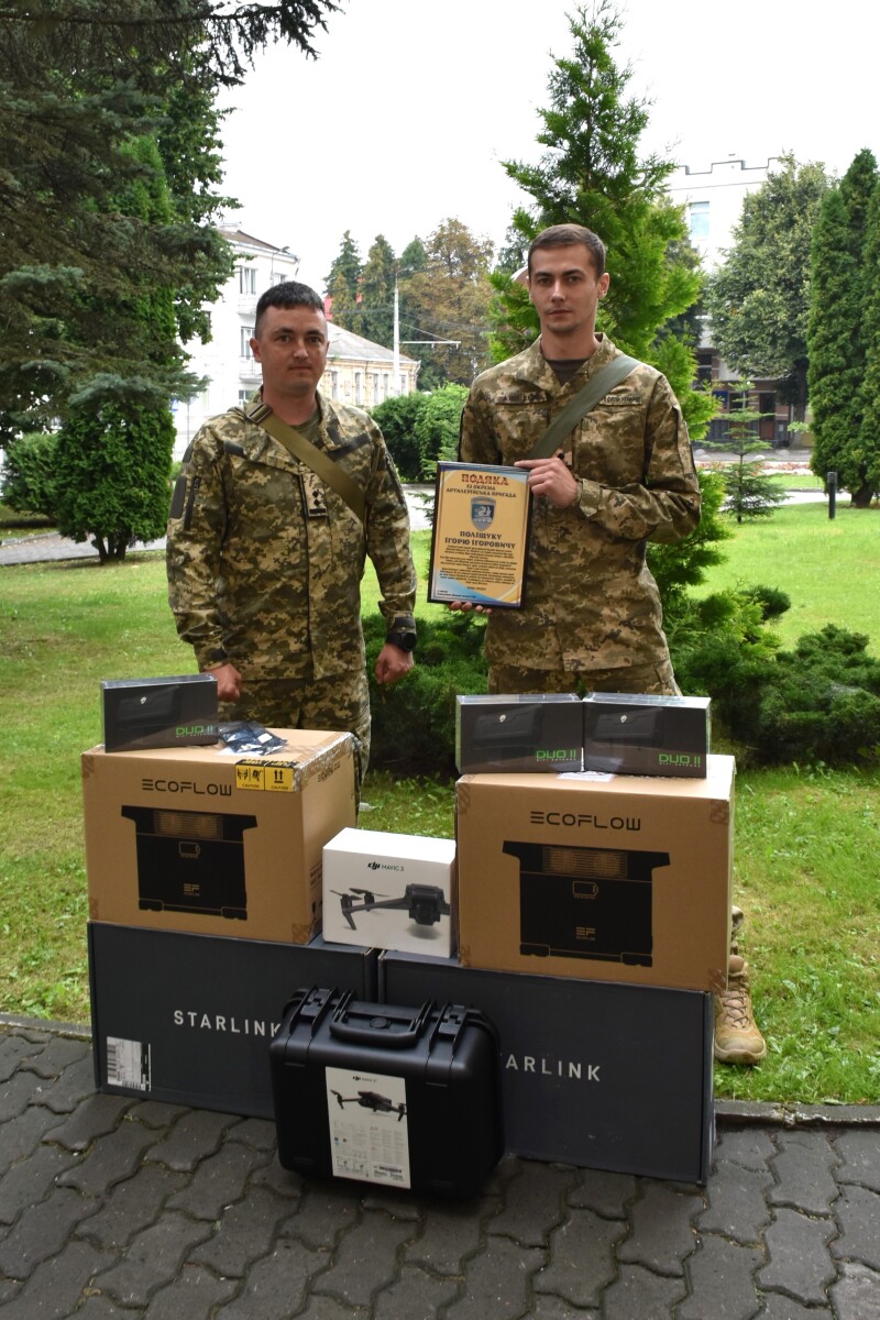 Військова частина А1325, зокрема 1-й самохідний артилерійський дивізіон отримав квадрокоптер DJI Mavic 3, квадрокоптер DJI Mavic 3 Т Enterprise (Thermal), дві одиниці супутникового модему Starlink, дві зарядні станції EcoFlow DELTA 2, три комплекти Alientech DUO2 DUO2458SSD, антени та перехідники до них.