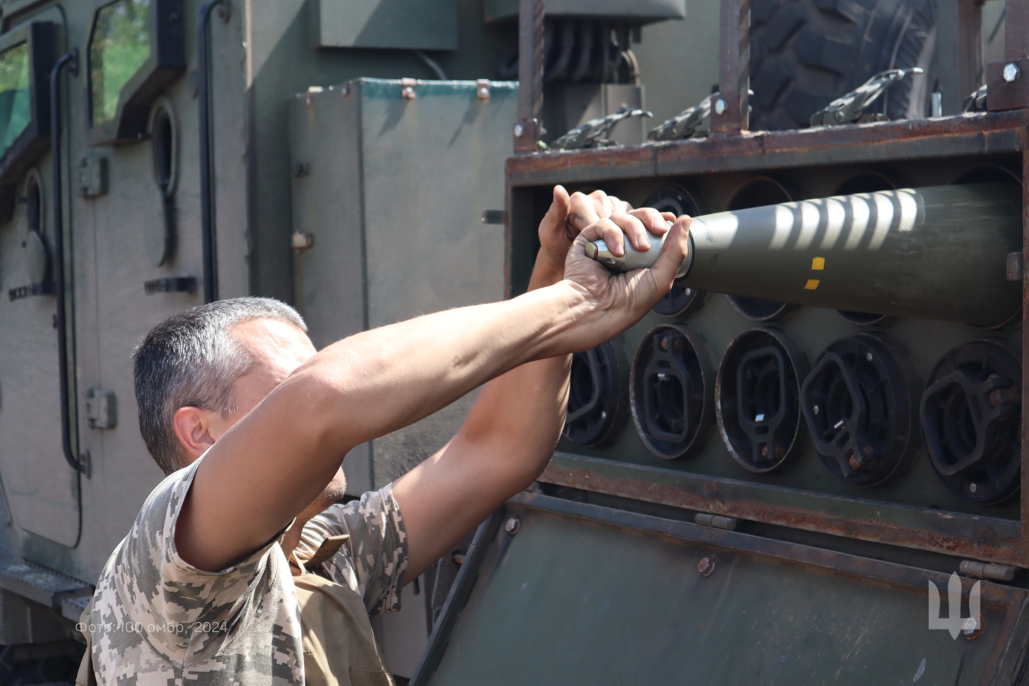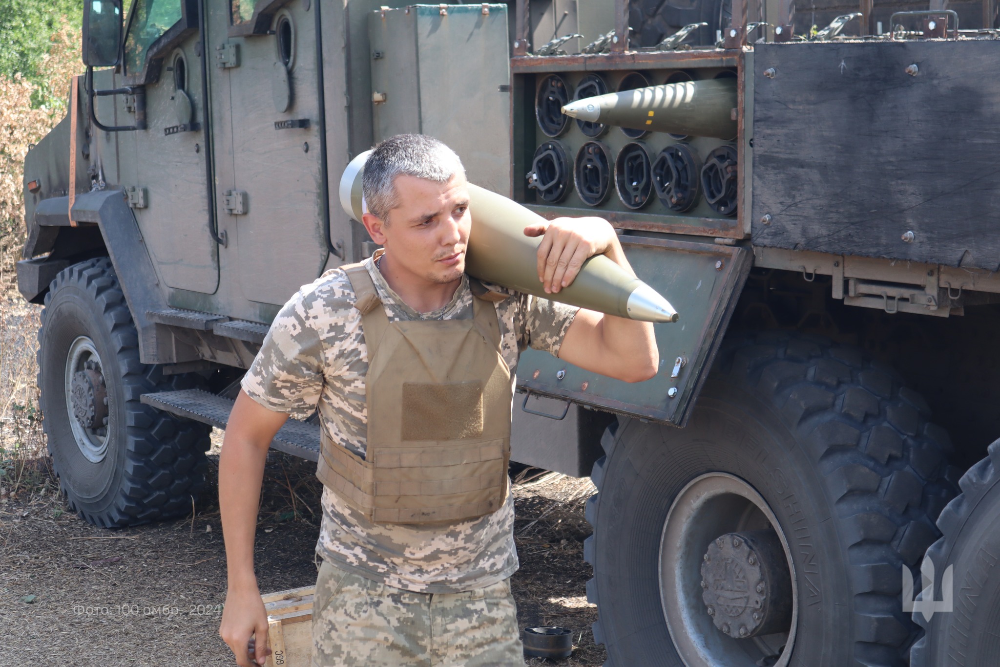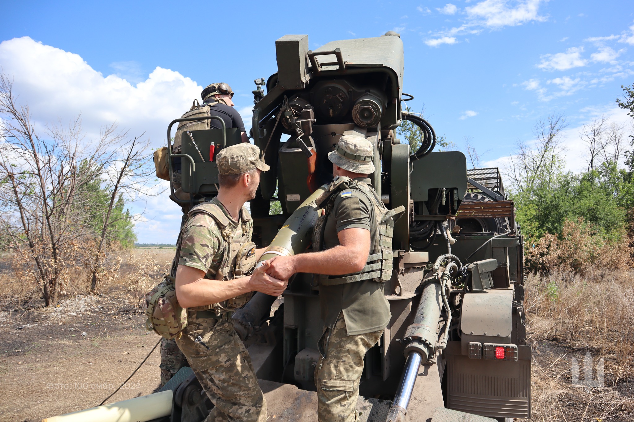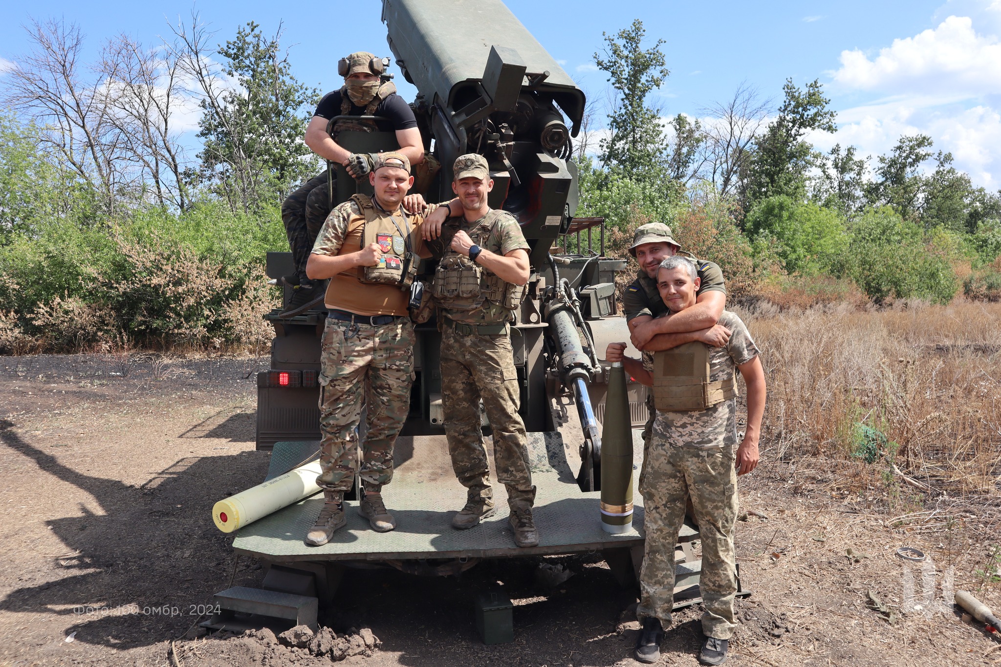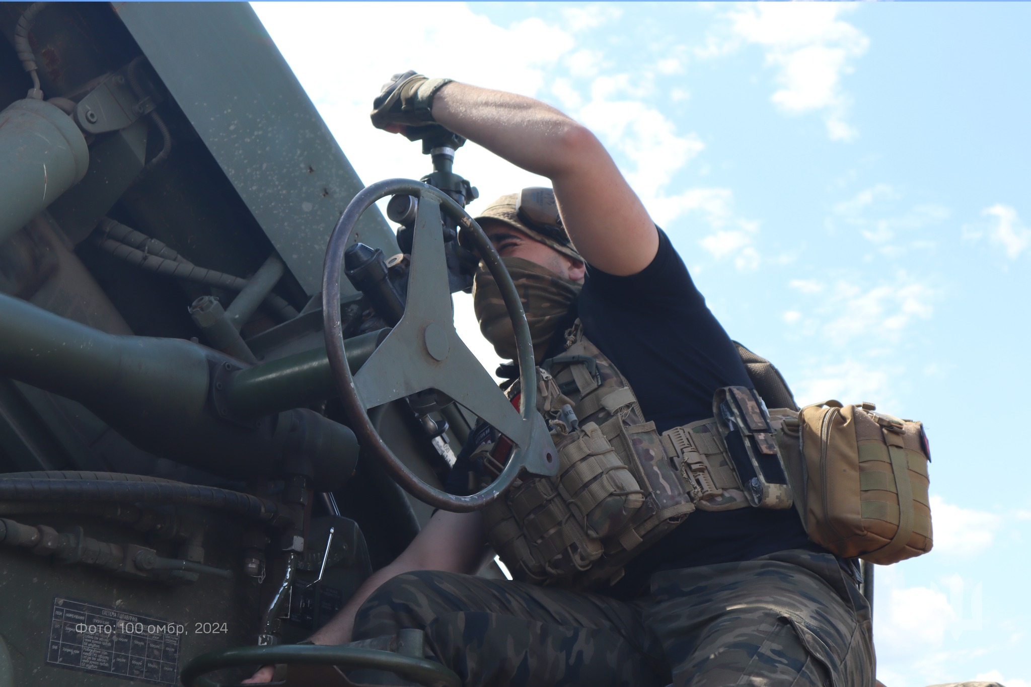 «Квінтет гармашів-віртуозаретів артилерійського дивізіону 100 омбр та їхня красуня-солістка – українська 155-мм САУ 2С22 «Богдана»! Артилеристи «Сталевої Сотки» переконують: найголовніше в іхній роботі досконало знати табличку…